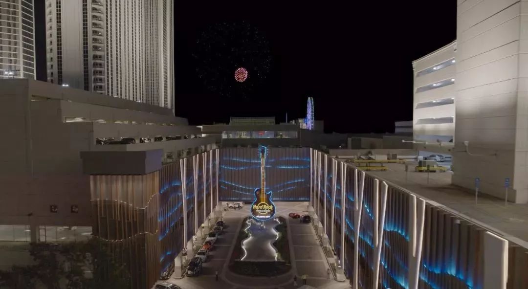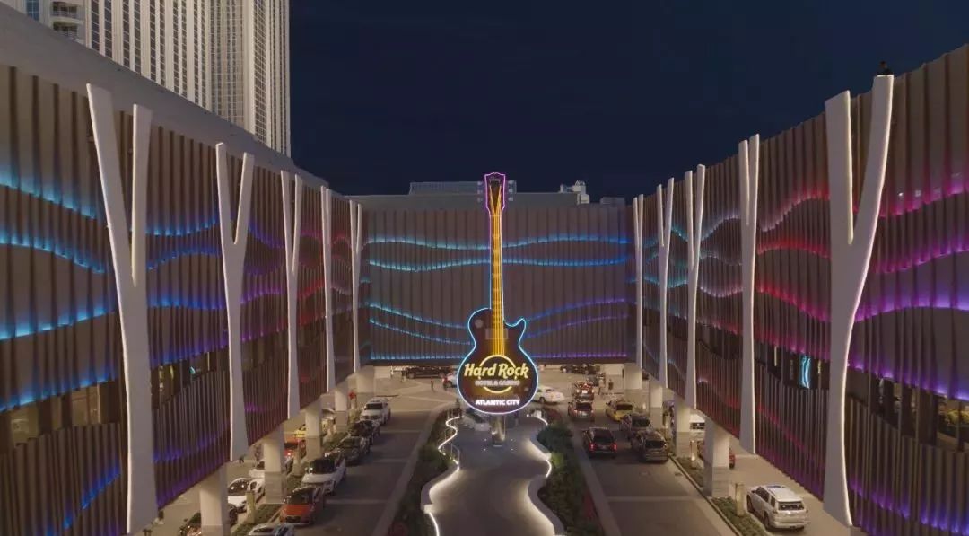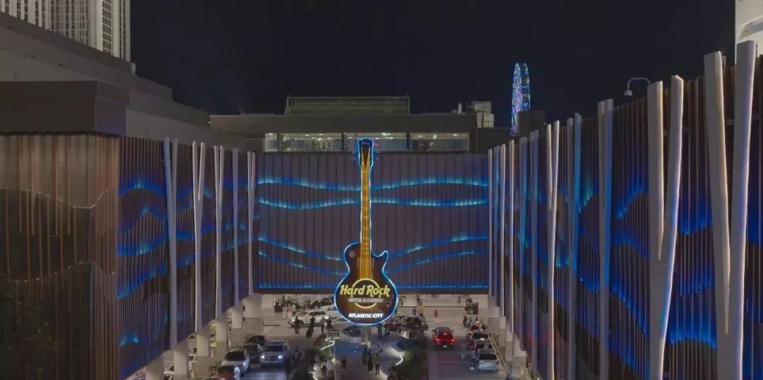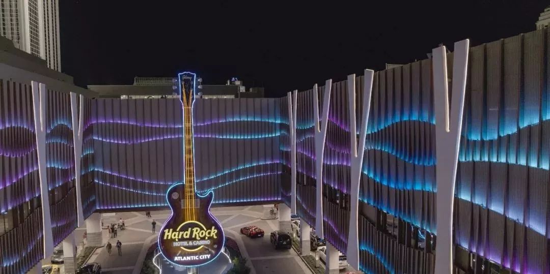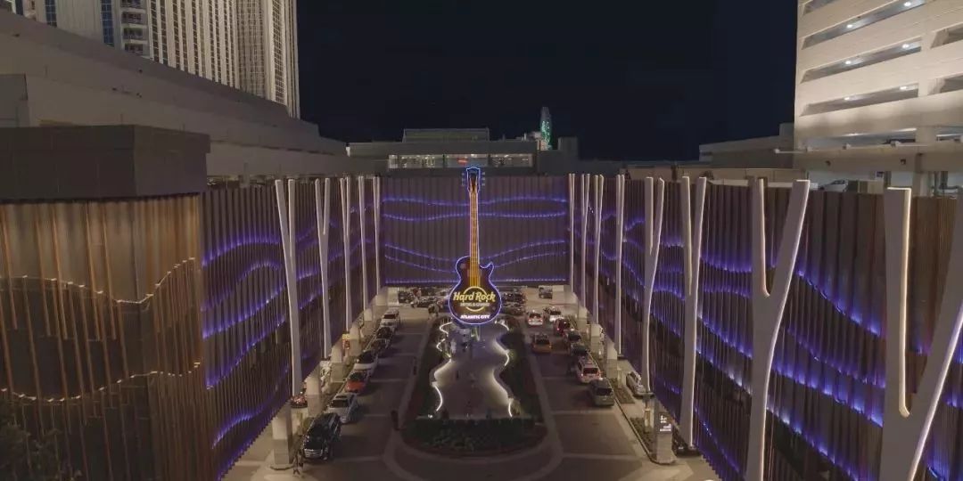 照明设计公司Fisher Marantz Stone与Digital Ambiance进行了接洽,为大西洋城(Atlantic City)的硬石赌场(Hard Rock Casino)带来了生动的立面灯光装置效果。这个概念要求沿着庭院的内立面,从u形庭院的一端到另一端,沿着周围的光线模式环绕主入口,这将反映赌场的季节性变化。在庭院的中心将是一把40英尺高的发光吉他,吉他上的弦是由Jones Sign制作的像素映射弦。这将作为安装的核心,并包含许多音频反应的外观编程的数字氛围。光的图案将从立面通过吉他流动,统一了体验,给庭院一个独特的外观,有时微妙,戏剧性和引人注目。