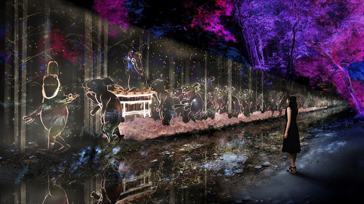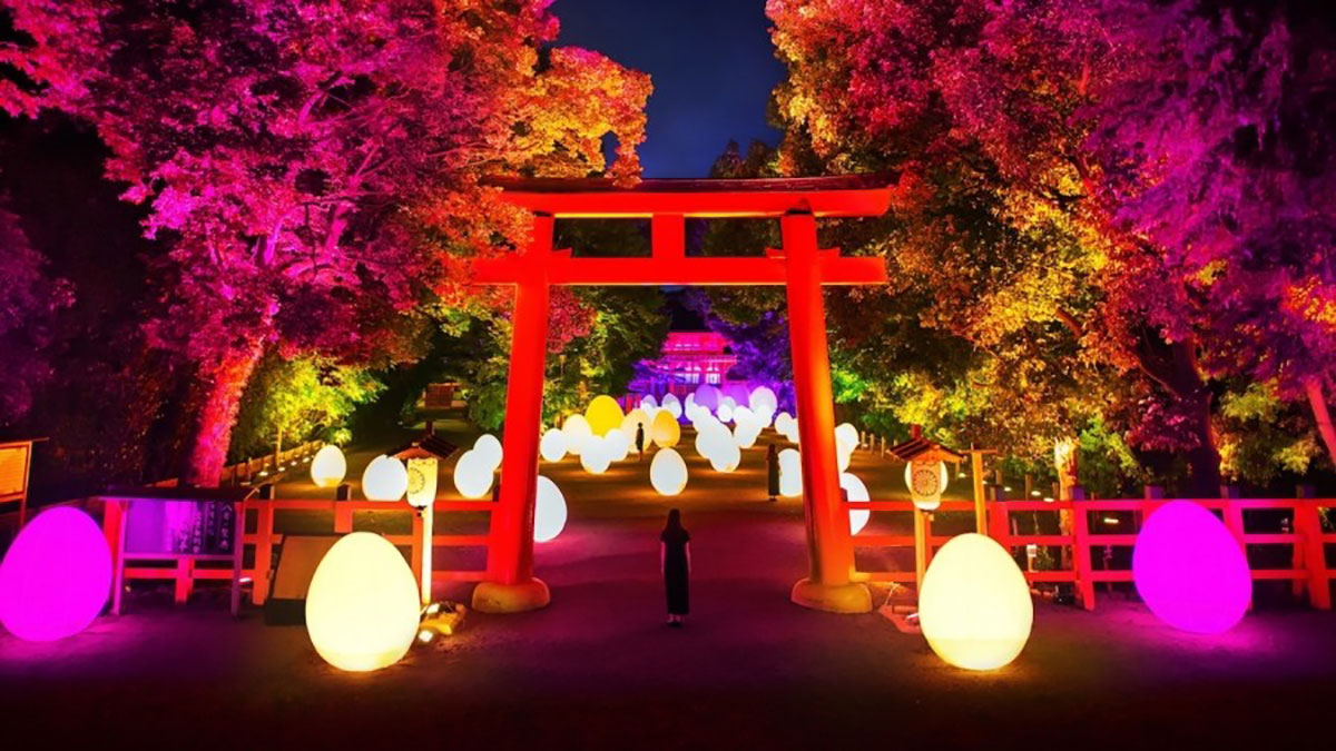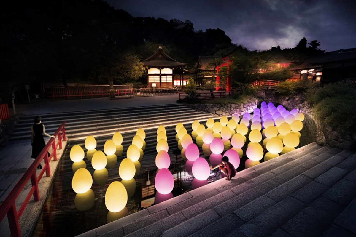 TeamLab是一个著名的多学科数字艺术团队再次带上新作品来到世界遗产京都“下鸭神社”。本次展览以“数字化自然”的概念为基础。今年,规模更加宏大,除了继续上一届展览中展出的旧作品外,还将有两部新作品。