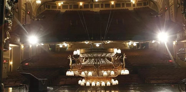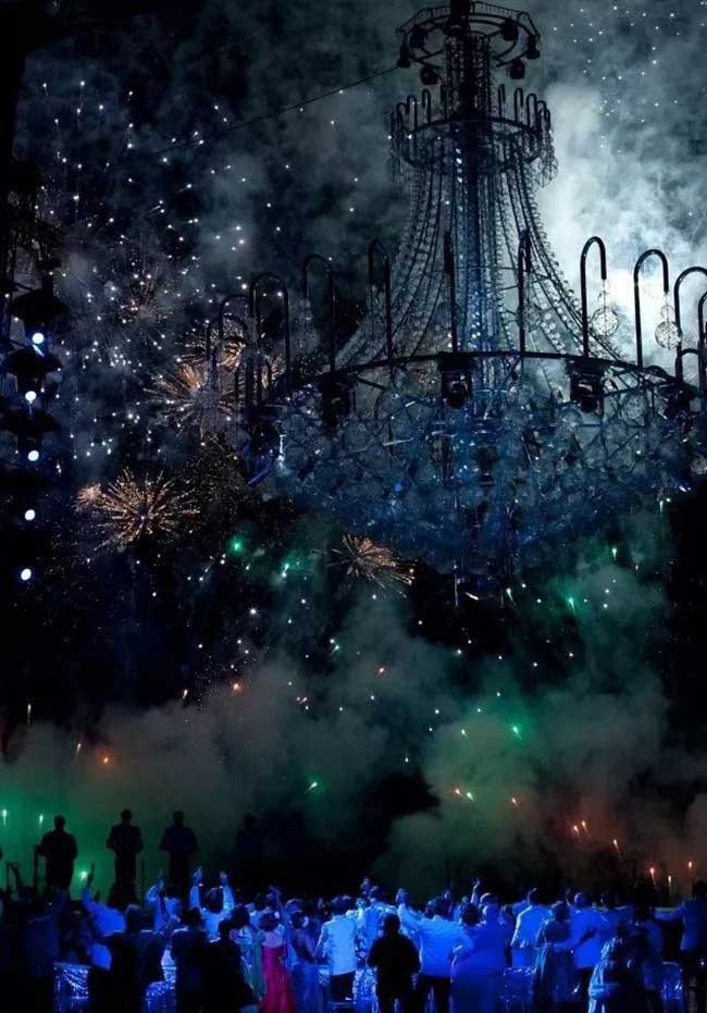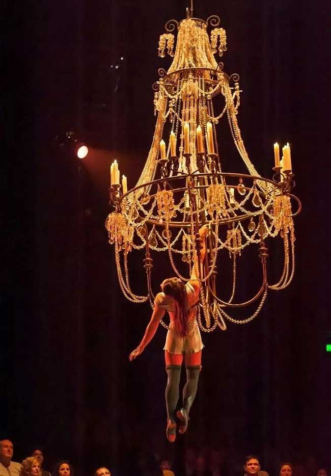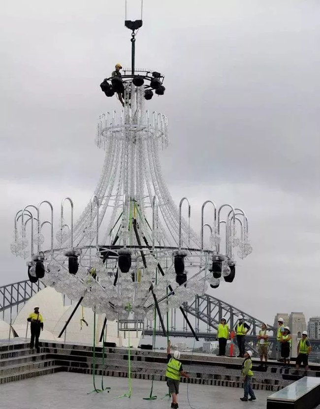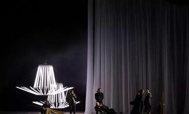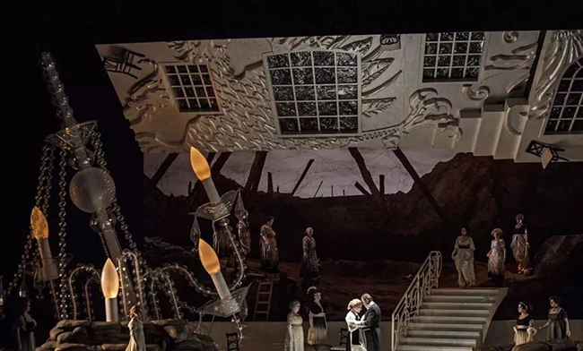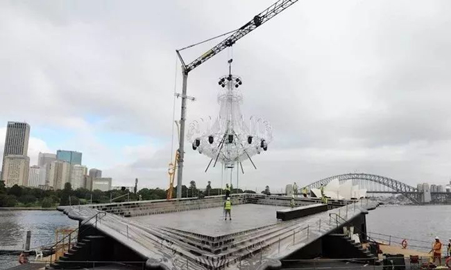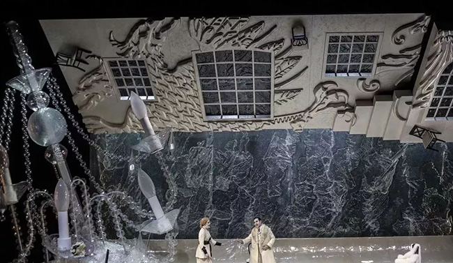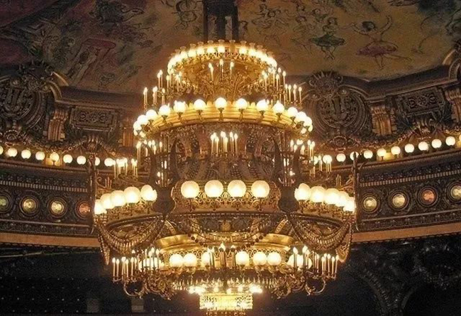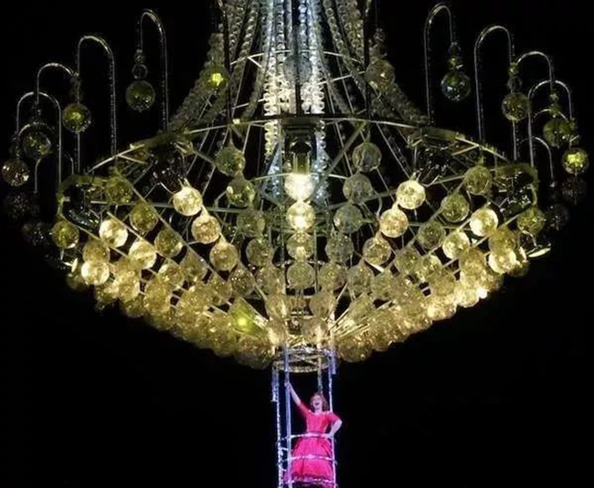 这个水晶吊灯体积更大,是歌剧《阿拉贝拉》舞台置景的一部分,几乎占据了舞台三分之一的面积。