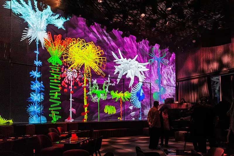 在伊比沙岛格兰酒店(ibiza gran hotel)内,太阳马戏团(cirque du soleil)的创始人盖伊·拉利伯特(guy laliberte)和世界著名厨师弗兰(ferran)和阿尔伯特·阿德里亚(albert adria)在伊比沙岛的“心”餐厅(heart)内开放。这是一家集美食、当代艺术和数字艺术于一体的多感官美食剧场。由ventana contemporary ibiza策划的“live art”项目中,法国艺术家miguel chevalier在“心”的独特环境中创作了两幅令人身临其境的数字艺术作品:“分形花朵2015”和“液体像素2015”。