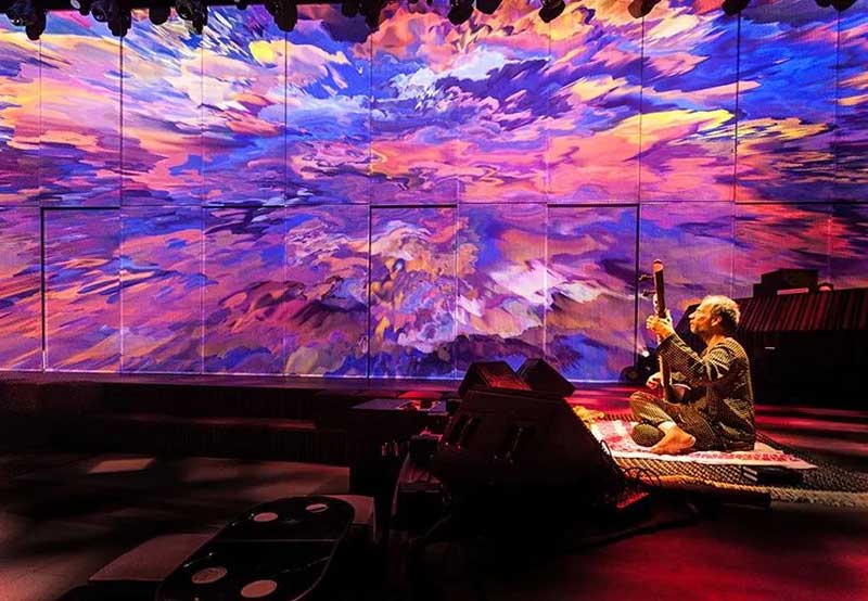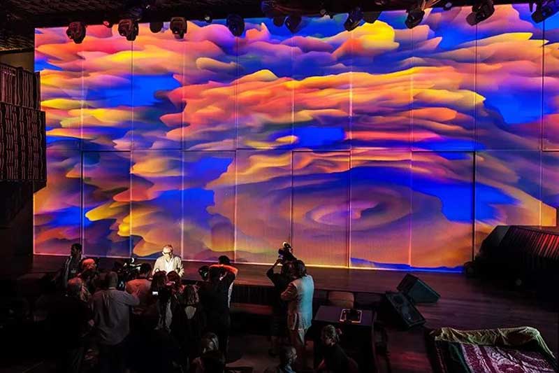 这个温暖多彩的宇宙让观众想起了伊比赞海和日落,在真实的时间里演变,并沉浸在一个位于梦想和魔法之间的超现实世界。太阳马戏团(cirque du soleil)表演者的动作创造出一条彩色的轨迹,与“绘画”融合,然后慢慢消失。在夜晚的某些部分,现场音乐与乐曲相互影响,进一步增强了画面的活力。