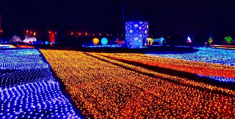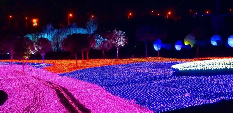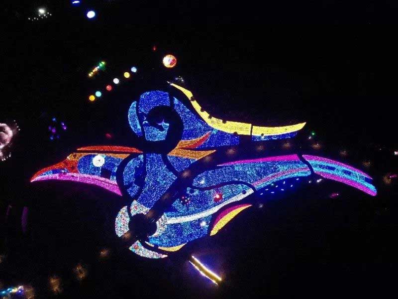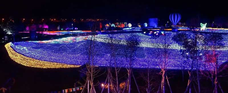 “灯光节”都是千篇一律?看看这个“耕耘”在大地上的灯光节,或许你会立刻将以往见过的那些灯光节抛之脑后。日落的时候,炙热的灯火终于取代了暮光的昏黄,只因匍匐于大地上的这只“春鹊”逐渐亮起。这只“春鹊”使用了60000平米大面积的全LED七彩灯,沿庄园内部花海牧场和人行道路依次铺陈开,约有2个足球场那么大,展翅的“春鹊”,辉撒人间,也寄予着人们春回大地、迎新纳福的喜悦。