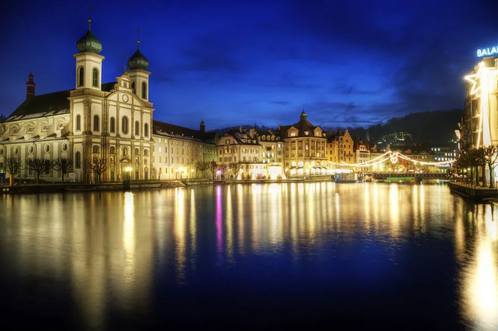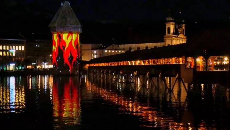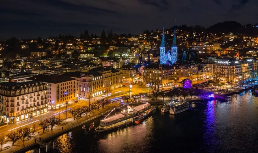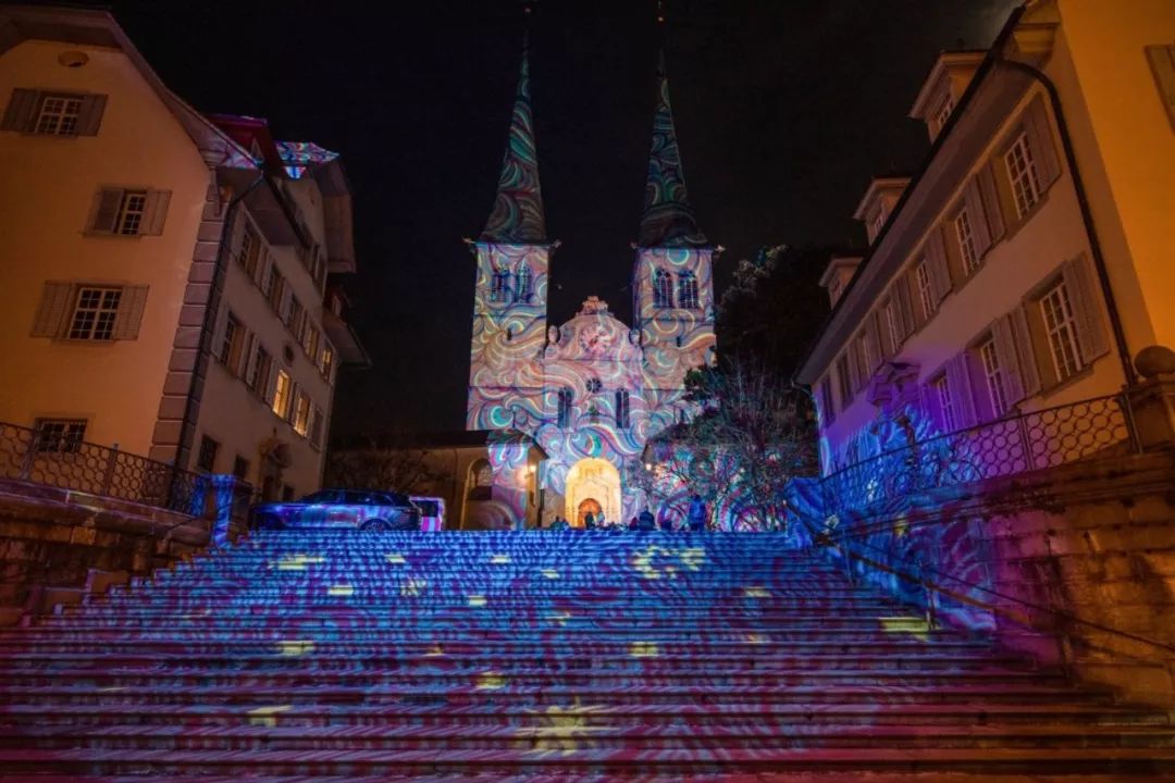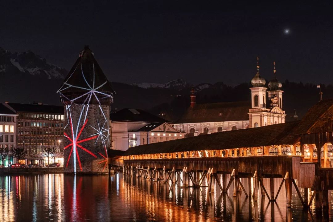 瑞士中部的琉森,是一座名副其实的光影之城。大家在城中徒步就观赏19座灯光装置,走完全程大约需要2个小时。