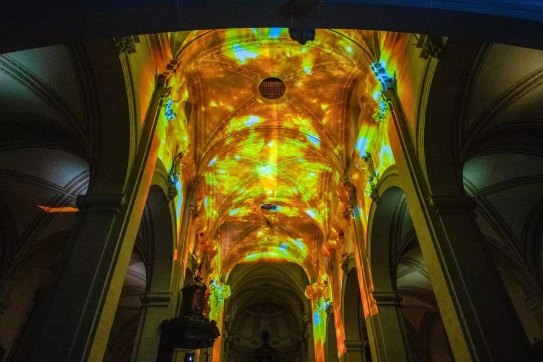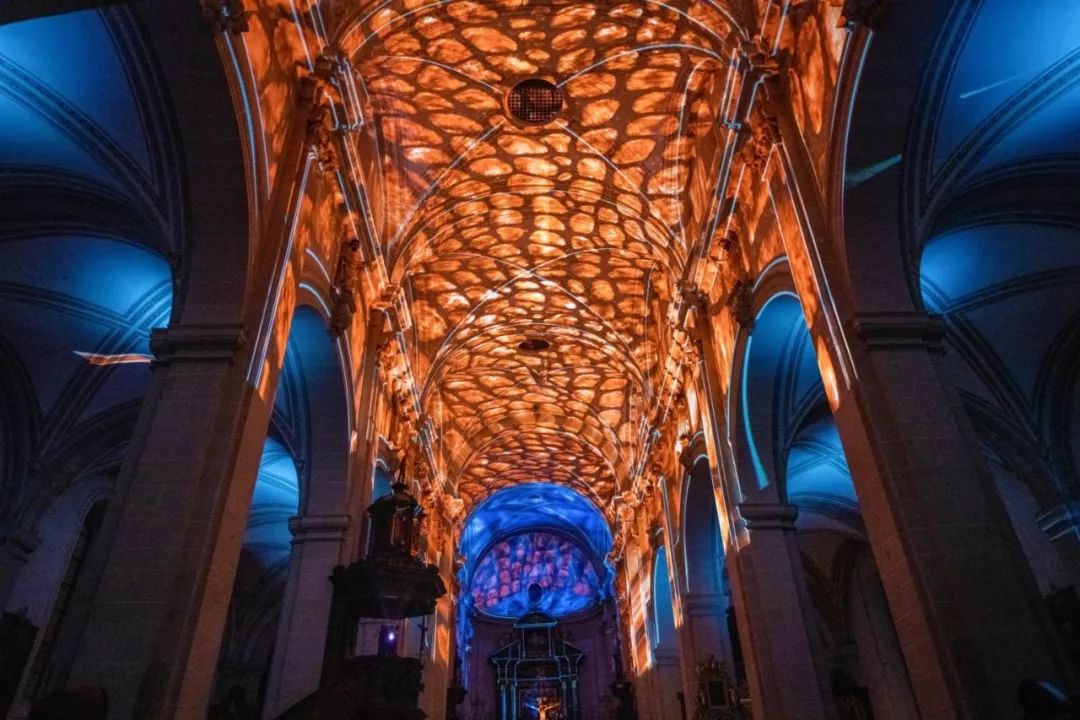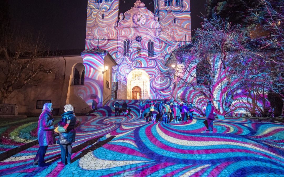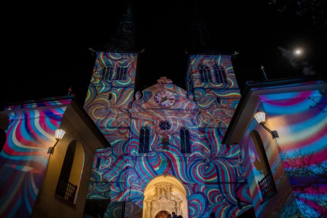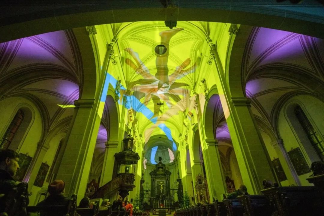 在圣莱奥德加教堂,苏黎世艺术家团队的投影作品En-Trance,在光海中翩翩起舞,带领你进入一个新世纪。