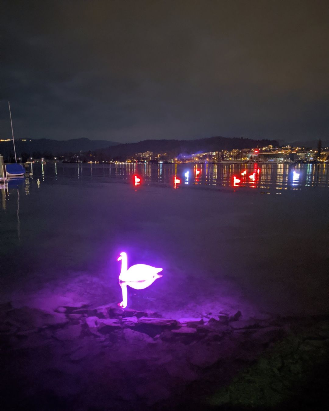 这些由GPS控制的电子天鹅,是LooMALAND公司研制的水上互动装置,在琉森灯光节首次亮相!