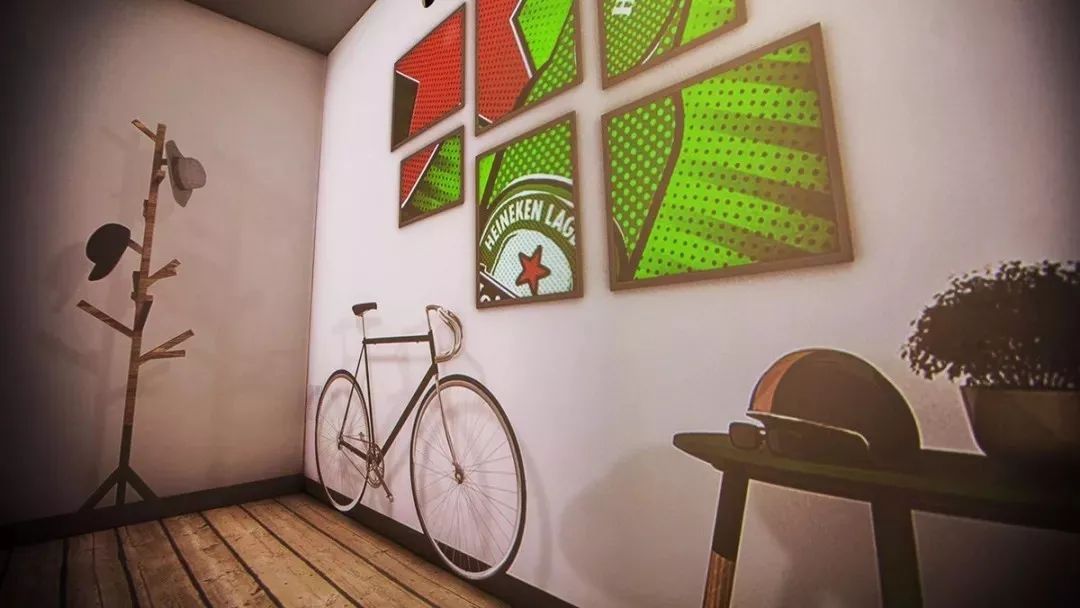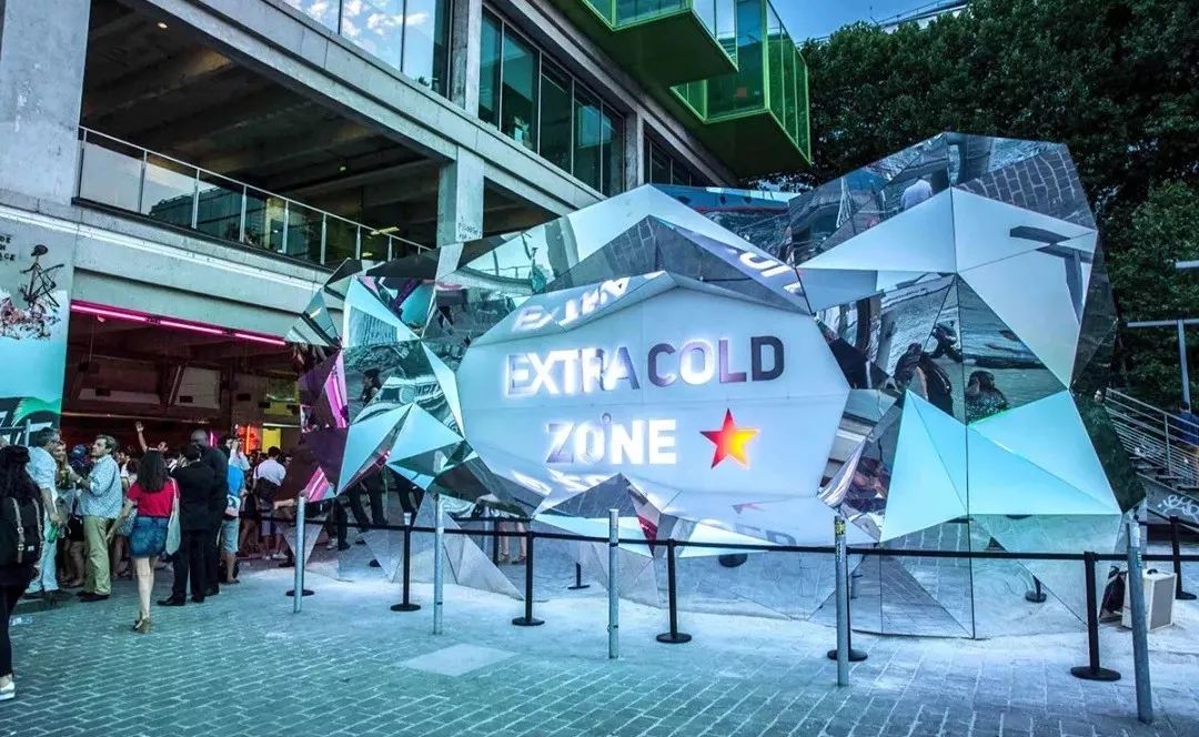 为了庆祝喜力“特冷啤酒”的发布,Superbien公司在夏季热点地区安装了一个特冷啤酒的冰冻盒子。参与者被邀请进入场景,坐在一个封闭的房间里,家居都是投影产生的。墙面地面都被覆盖了投影,初始画面是喜力品牌风格的绿色装潢,清新的感觉扑面而来。渐渐地,地面被冰雪侵蚀。到后来,房间被冰全部冻住,然后碎裂。
