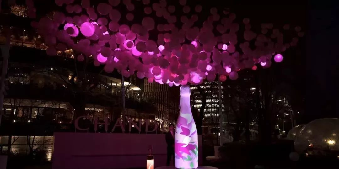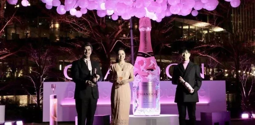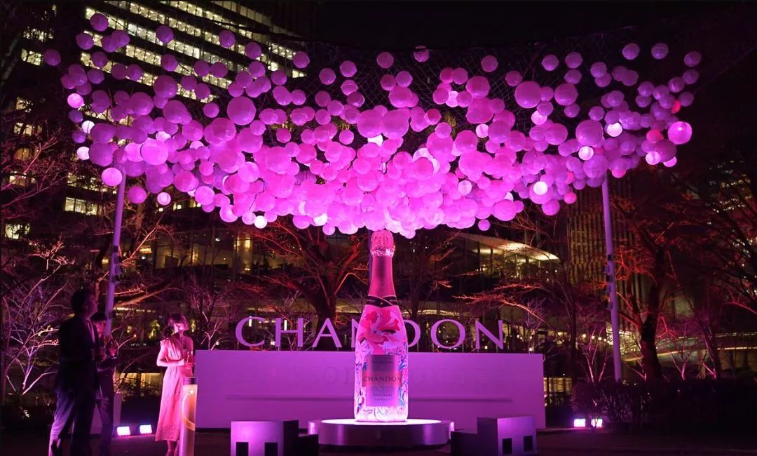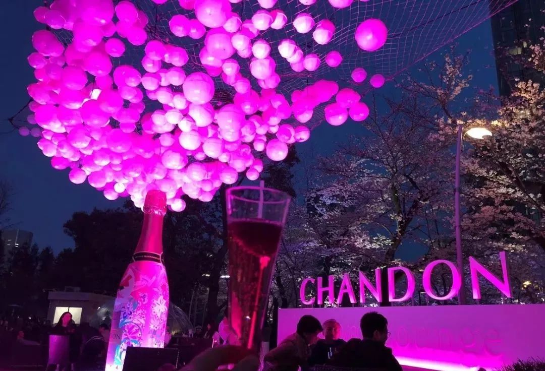 作为hanami Chandon年度促销活动的一部分,法国Chandon起泡酒创意总监Tomoyuki yonezu以粉色时尚的方式为东京的樱花季增添色彩。结合hanami Chandon的照片,一个大约3米低的投影设备被推出。在观赏大樱桃,你可以品尝尤其的食物和观看樱花一起钱登,享受观赏与品尝泡酒。