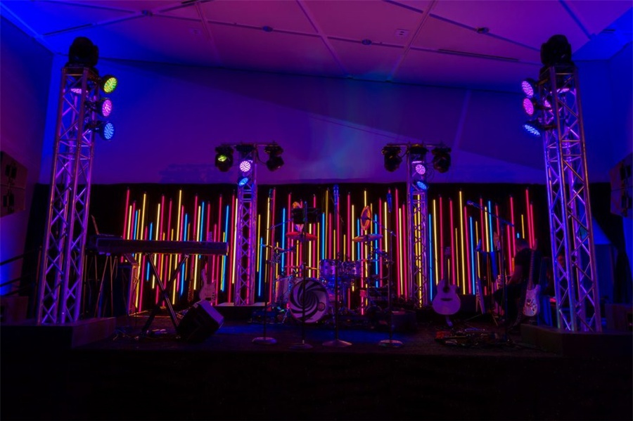 另外还要注意LED灯带还有变色与不变色,其中变色的还有七色灯带和无极变色,自带编程和不带编程,防水与不防水。LED灯带在活动的装饰中,可单独使用,也可以安装在现场的其他布景上。LED灯带除了与舞台背景的巧妙搭配外,如悬吊在空中的立体几何结构通过使用LED灯带呈现出勾边的视觉效果,这样会让这个立体几何结构在活动中更加的突出与清晰。当然,如果你想突出现场的某一物体时,可以用LED灯带来勾边,创造一种突出、明显的视觉效果。