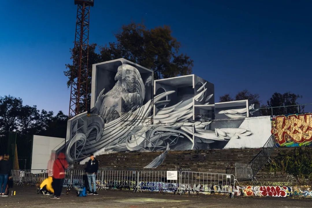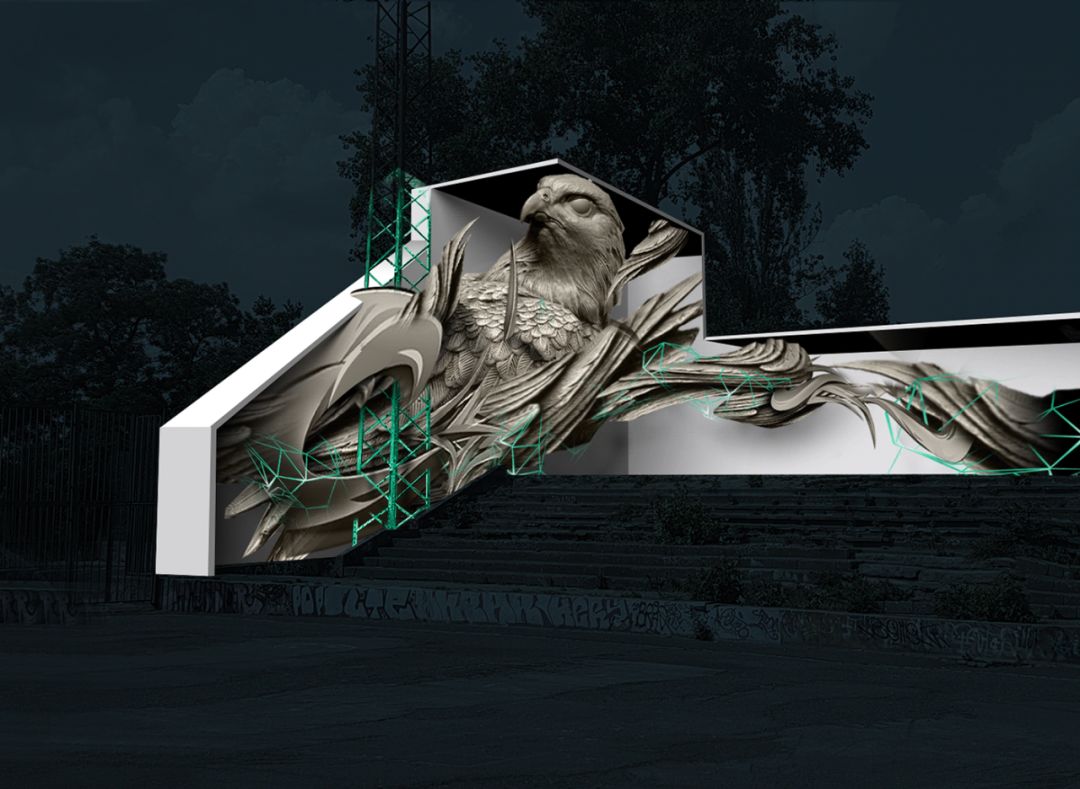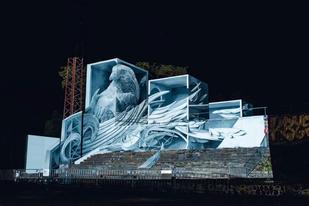 信号节是在捷克共和国布拉格举行的为期四天的灯光艺术和新兴技术节。今年信号节的主题是“下一个 100 年”,团队抓住了灵感,将旧沥青运动场的一堵墙作为画布,猎鹰作为一个统一的元素,想象在未来百年涂鸦场景会发生什么,描绘街头艺术可能的乌托邦式未来,在观众面前呈现的是一场视觉之旅。投影内容以 5 分钟为循环,代表了未来 100 年街头艺术场景中的所有场景。此次艺术展览在短短4天内就吸引了大约50万人前来参观该作品。此项目将尖端技术、定制音乐与街头艺术融合在一起,动画投影照亮了涂鸦,将观众从现实带入了身临其境的多维体验。