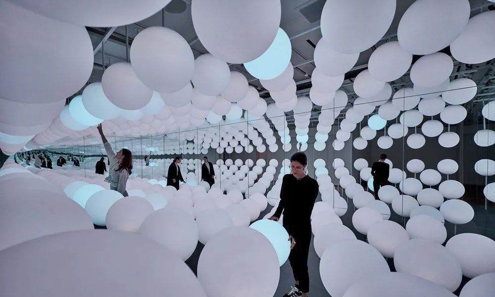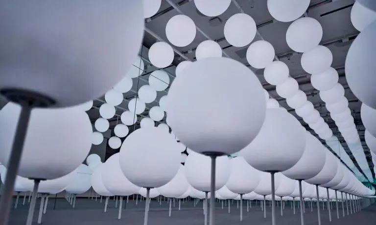美国纽约INTERSECT展示的光之花田灯光装置一开展就秒变网红打卡点,整个艺术装置由168个LED感应球被安装在活动的摇杆上,通过镜面反射营造出无限延续的沉浸式空间,结合了视觉和触感,为当地游客提供了真正独特的互动体验。