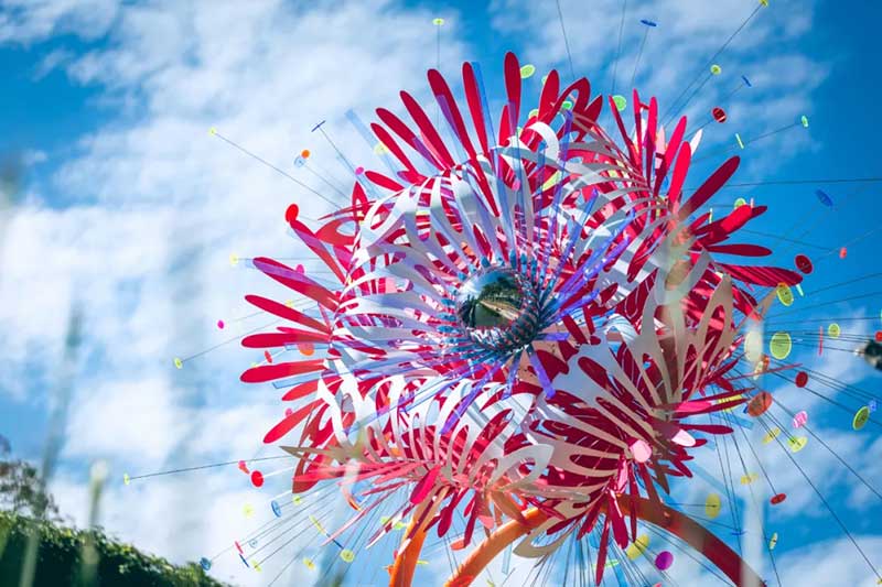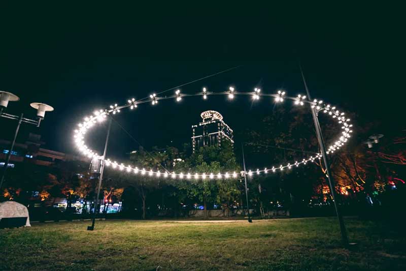 今年灯会主视觉特别结合传统灯笼、纯真孩童、乘灯飞翔三者意象,传达元宵佳节、家庭团聚的美好时光,而眺望远方的纯真孩童,坐在灯笼飞翔的喜悦神情,象征以赤子之心迎向充满想像、无限希望的美好未来!