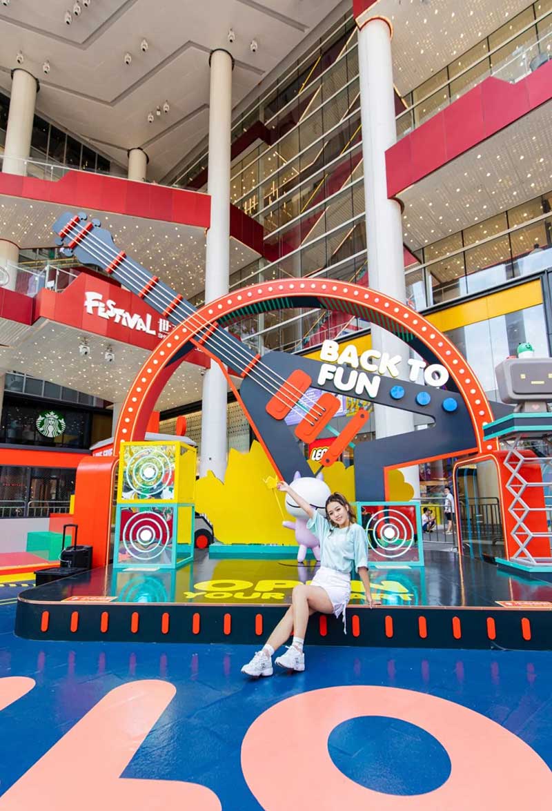 首先打卡的便是跳跃灵动的音乐隧道,黑白琴键在脚下,谱写出了治愈的快乐乐章。属于夏天的DNA已经在体内躁动,COME ON年轻力量,一起和莱阳加入,黑白琴键上的乐队party。舞台的独有魅力,再加上龙龙的神奇魔力,在这里遇见生活的小确幸。缤纷的色彩、动感的琴弦,无处不在的音乐元素令人精神一阵,爆发吧小宇宙,跟所有的烦恼说bye-bye。软软的小云朵“劳迪”喜欢唱歌,是个治愈系的“小话痨”,它的“直播间”里一定充满了欢乐,快来Loudy直播间,让你不再感到寂寞。温暖又充满人情味的龙龙神奇邮局,也在这里“亮灯”营业,以纸为媒,载梦前行。