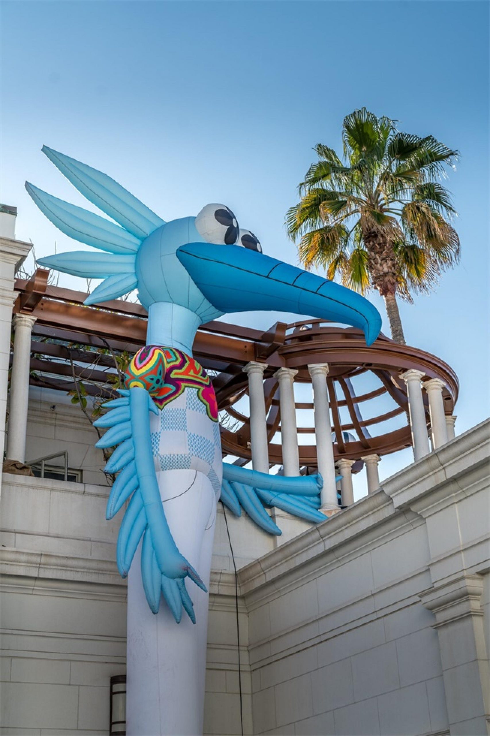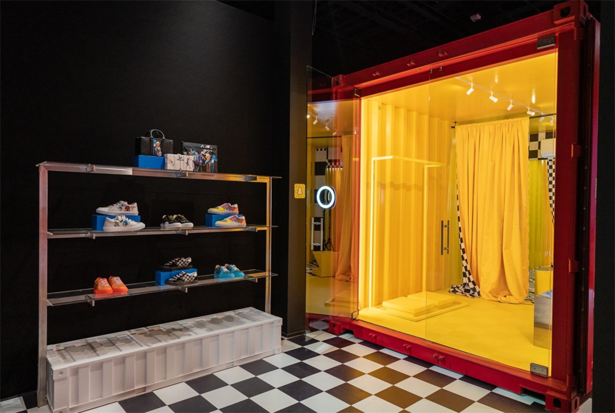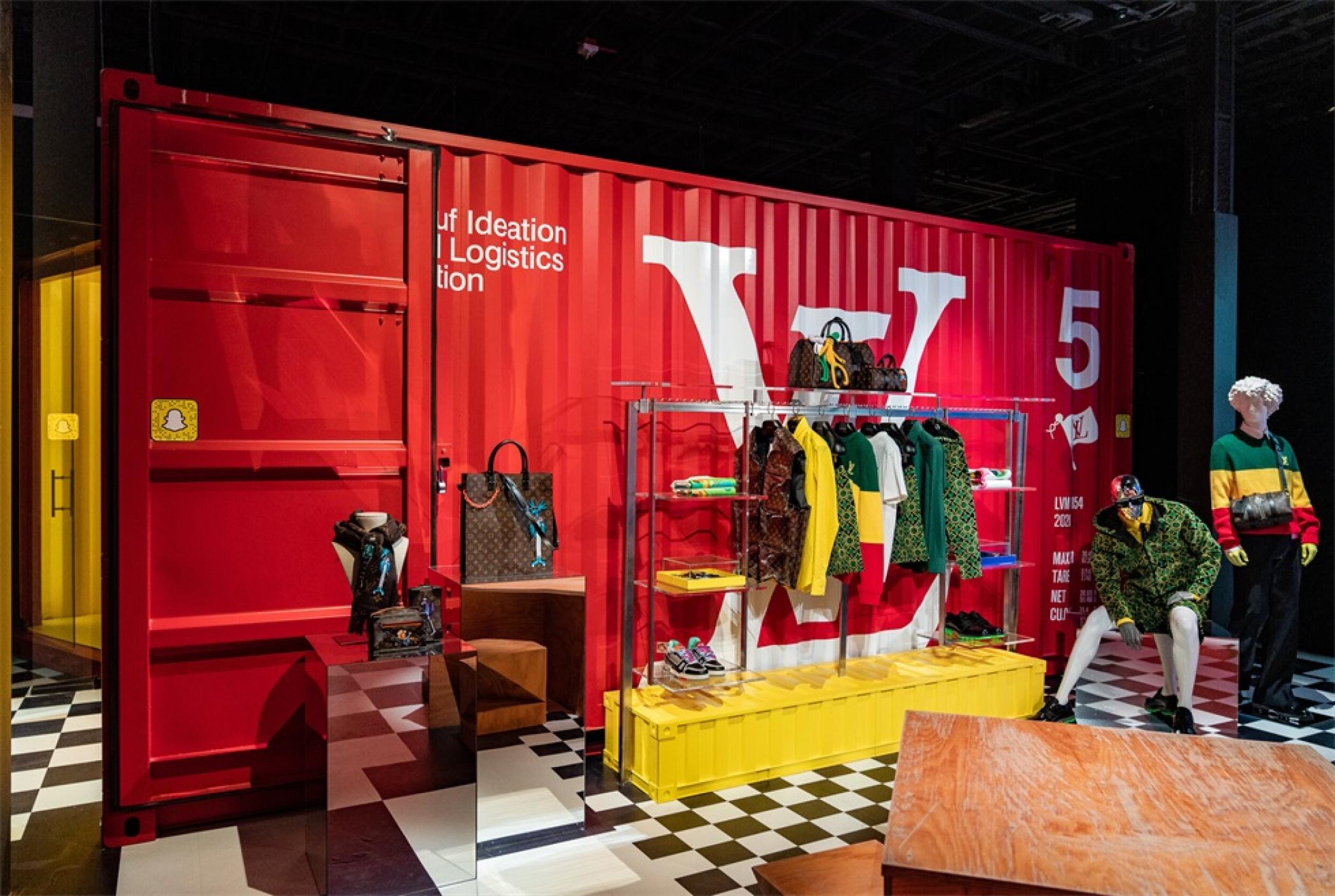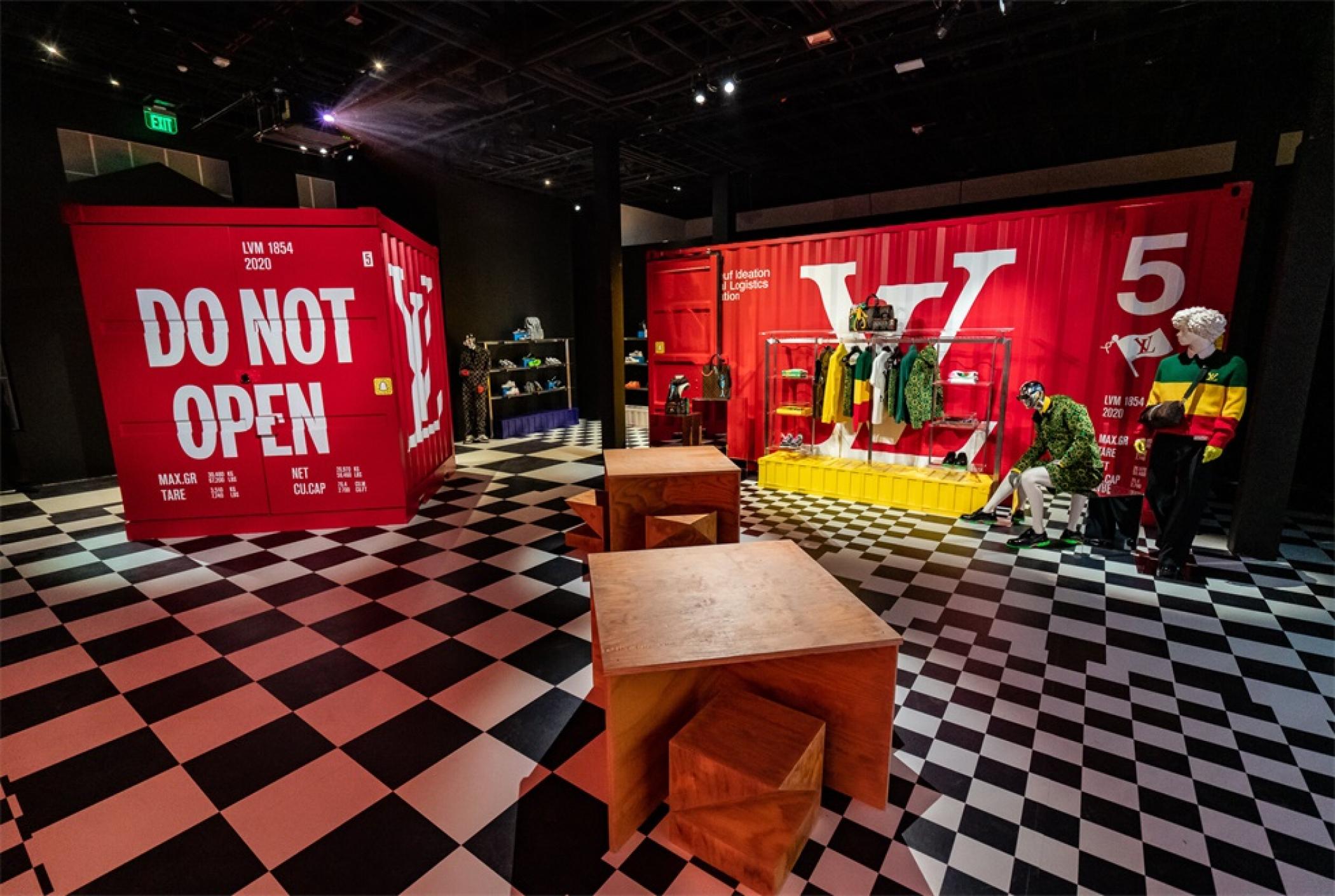 “路易.威登X”临时的艺术展示活动项目是在罗迪欧大道北端打造的一个必看的体验,吸引了大量人群和国际媒体。“路易.威登男人的临时居所”的活动时间更短,活动目的是展示路易威登2021年春夏男装系列,而装置的亮点是一个鲜红色的集装箱“入口”。集装箱主题延续在一层,作为1600平方英尺零售空间的背景,外部细节包括窗户玻璃贴和巨大的充气地球和卡通,这是整个项目的主题。