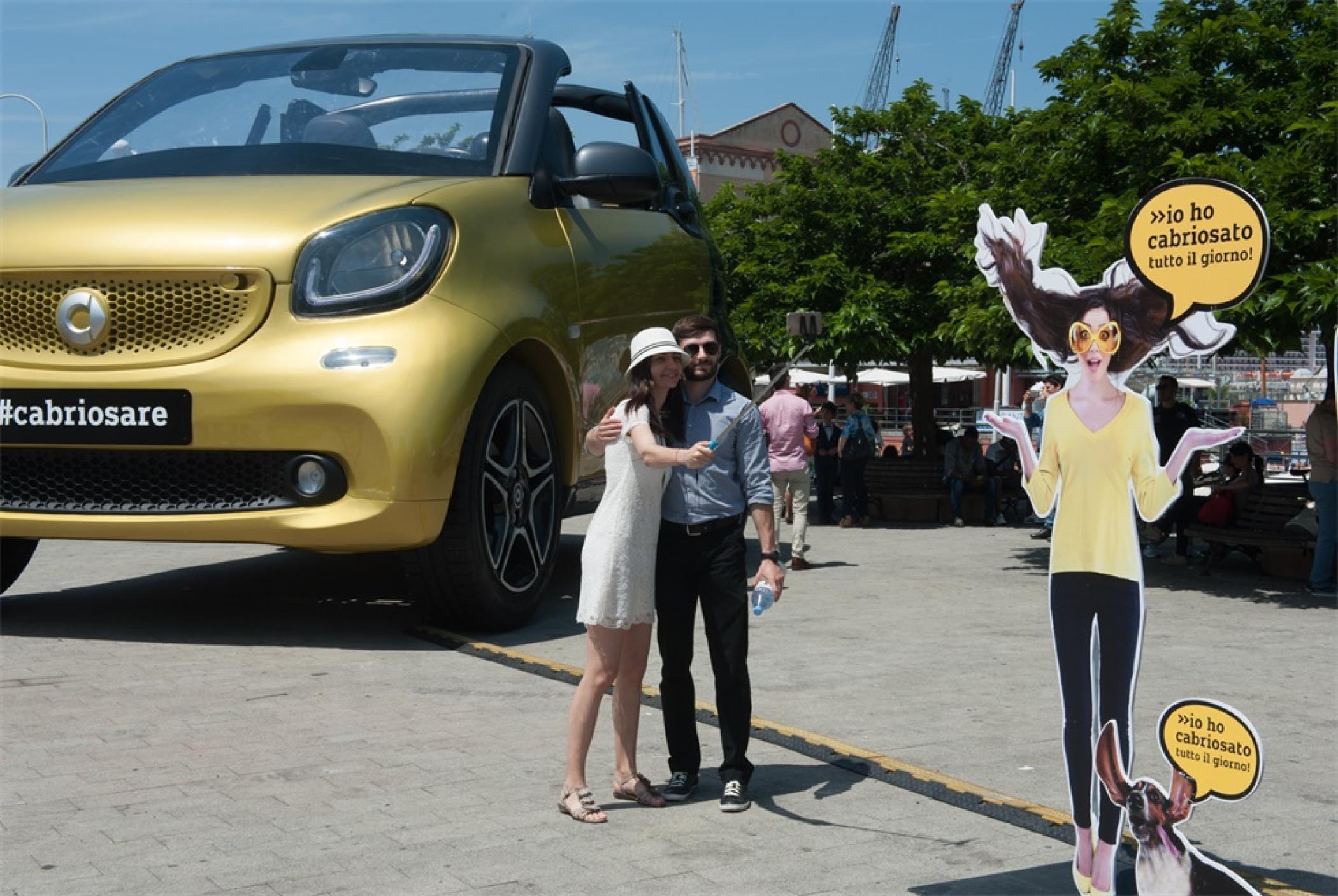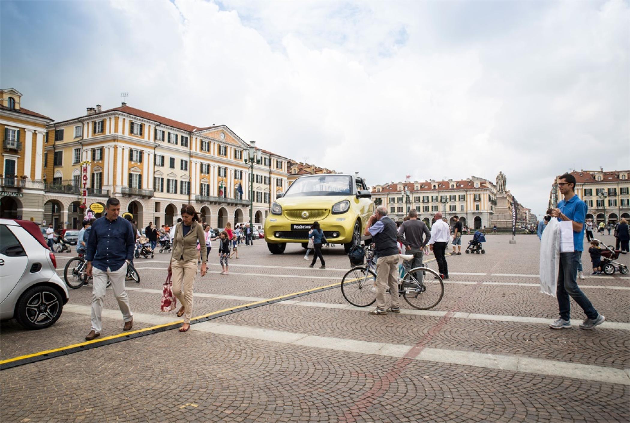 新Smart Cabrio的启动之旅在罗马开始,在十广场奔驰的超大型智能车FORFUN³以一种迷人的、前所未有的敞篷车版本出现,“Cabrio”表达了一种独特的旅行方式,不怕冒险的自由精神,对新事物充满好奇。