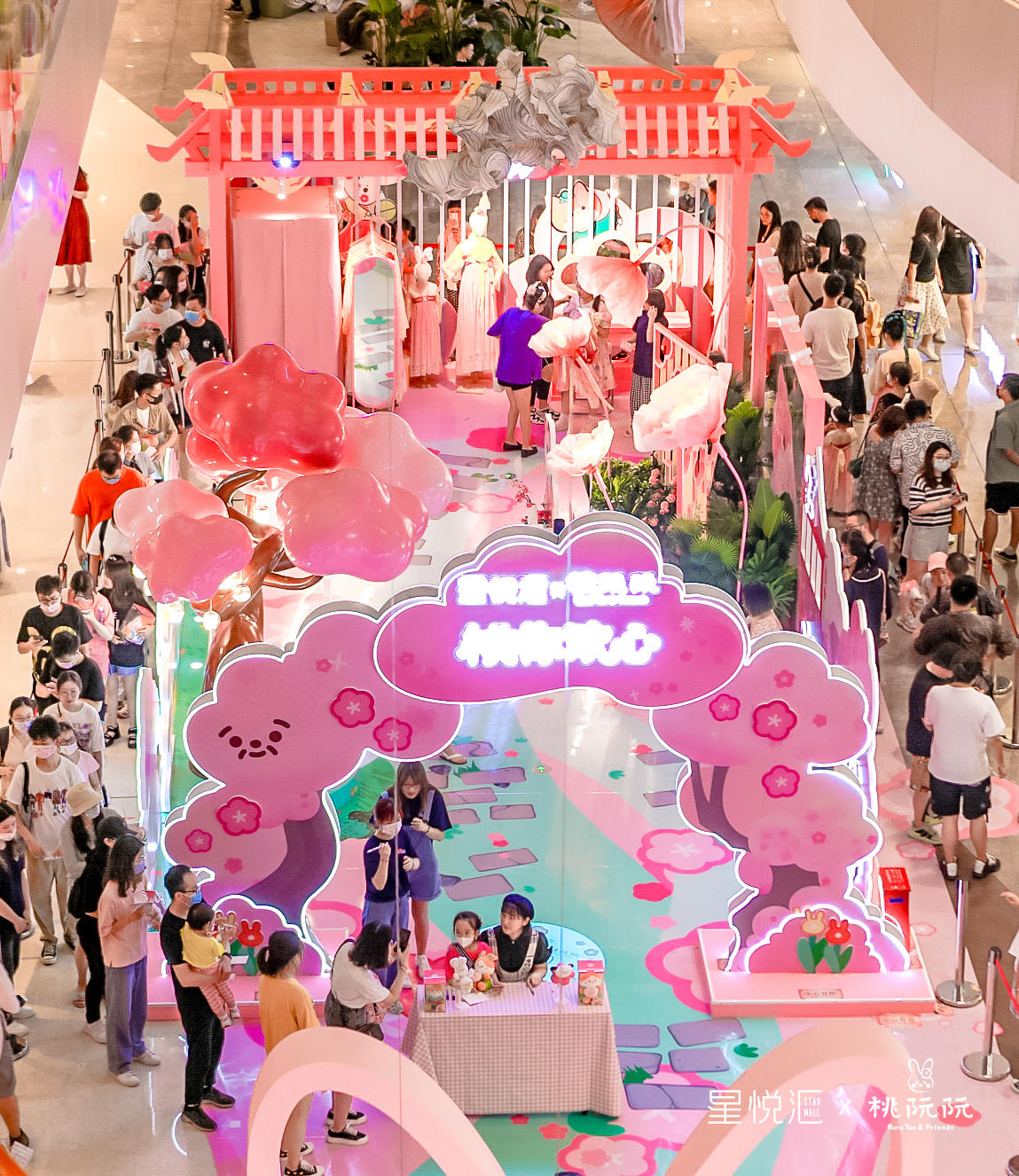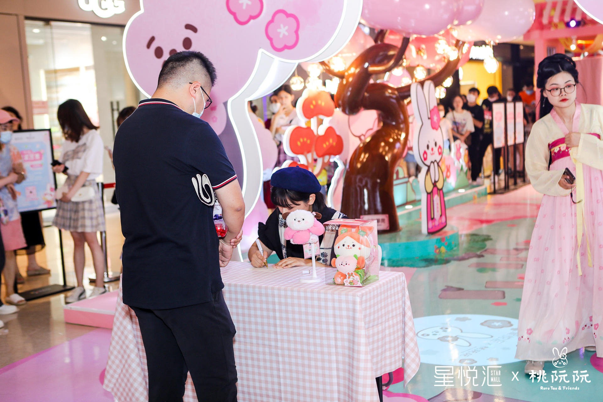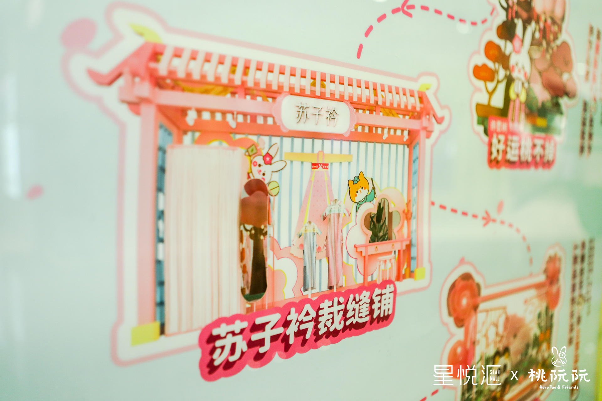 Rolife若来首个古风IP家族——桃阮阮,继续开拓潮玩市场,开启一场夏日限定“桃你欢心”主题展。本次桃阮阮主题特展作为在苏州的首展,以陶渊明的《桃花源记》等多个中华古典文化经典为灵感,创造出了位于市中心的世外桃源,深度还原了二次元“桃花里”世界。展览整体分为心动桃花里、甜味生活百乐图、桃气小“食”光、苏子衿裁缝铺、一曲桃花调、桃花小铺等多个打卡点位,年轻化的多元空间,定制沉浸式的潮玩场景。每个区域的活动和惊喜也各有不同,是潮人钟情的打卡圣地。