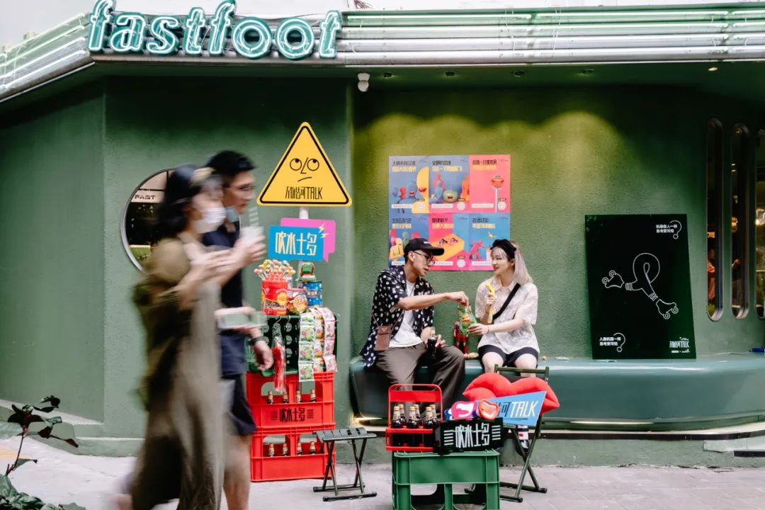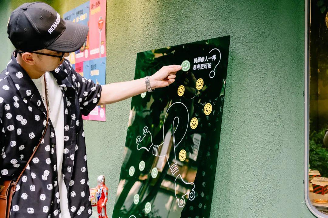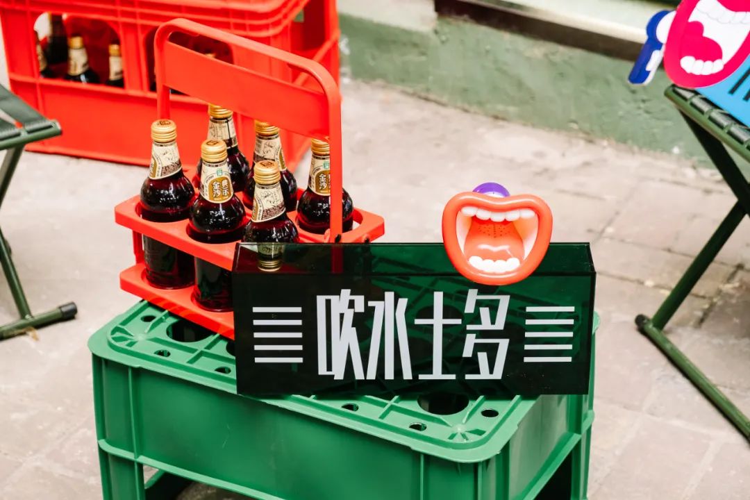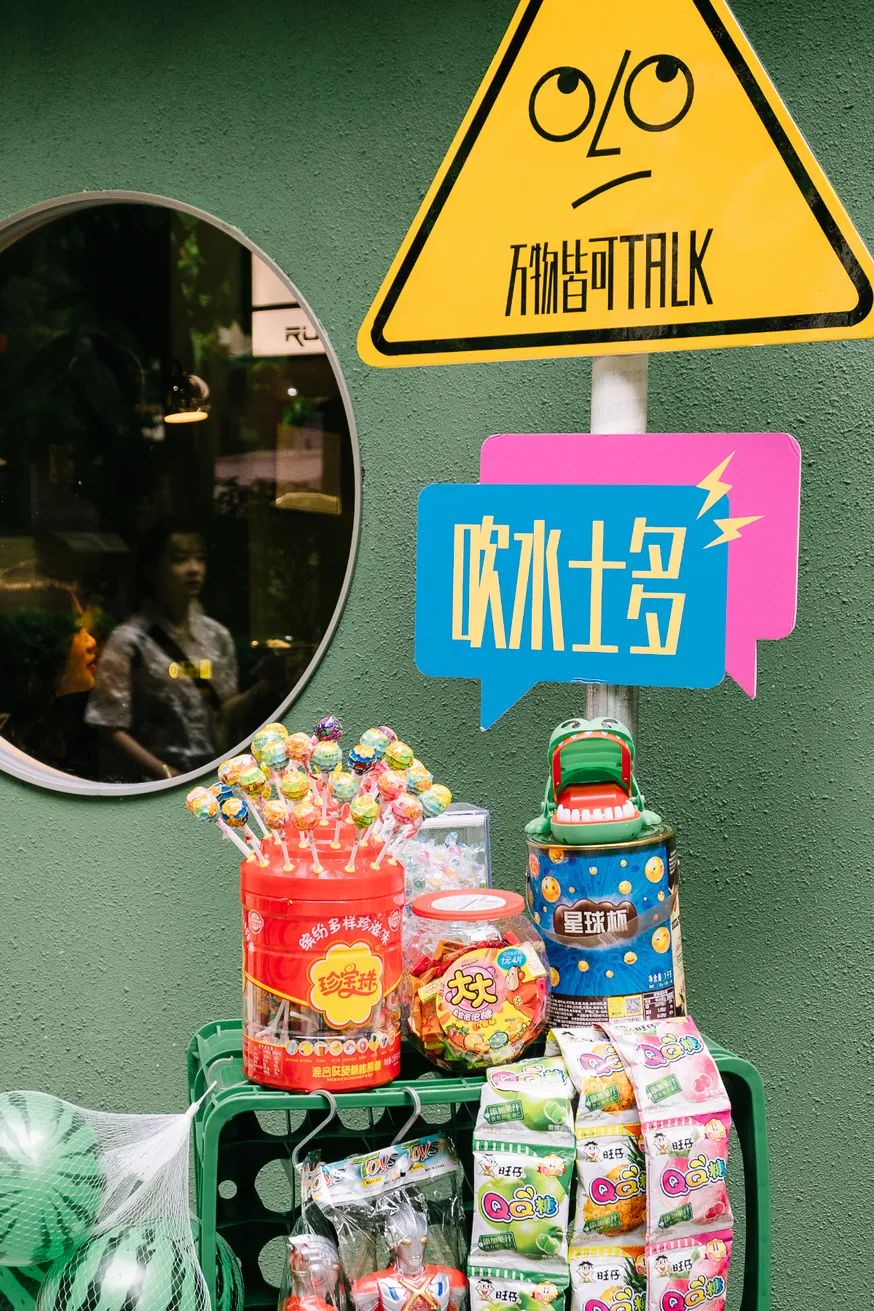 「吹水士多」里藏着不少小心思,每一个都能对广东人造成「情怀暴击」。透明塑料包装的奥特曼玩具、插在大圆罐盖子上的各式口味棒棒糖、装满玻璃樽亚洲沙示的汽水箱等等,共同营造出那种熟悉的鲜活氛围。置身于其中,每个人平日里被压抑已久的表达欲,自然而然被唤醒。去到任意一间「吹水士多」,都可以领取到一套「吹水装备」,它包含了一份投票贴纸、一份主题地图和两款主题定制口罩。强烈建议一定要去领取,因为每一样都是「吹水」之旅里的关键道具——投票贴纸是表达态度的利器。每一家「吹水士多」里,都设有「TOPIC」区。每个「TOPIC」区的议题各不相同,但相同的是,都是以清奇而刁钻的角度来引发年轻人的共鸣。在活动期间,「吹水士多」附近将有一些漫画感MAX的头套人出没,他们就是这次活动的隐藏NPC。只要你成功「堵」住他们,当NPC喊出「开始你的表演吧」时,摆出双手在胸前交叉的姿势,对上暗号「杠精哒咩」,即可获得隐款的周边贴纸一份。