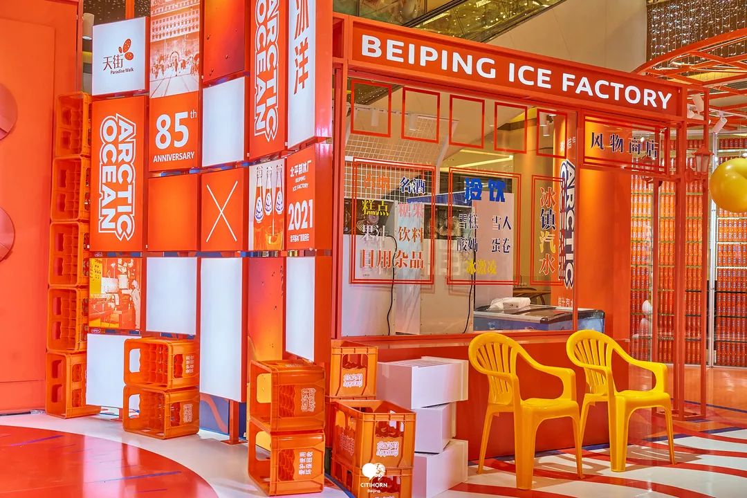 位于整个展区中央的是北冰洋历史博物馆区,迎面而来的LED广告牌满满的老北京味道,仿佛走进了电影片场。这里还有老北京话的科普呢,“大拿”、“炸庙”、“没熬头”……,跟着冰冰熊一起对话古今。巨型弹珠机&扭蛋机,现场体验即有机会获得北冰洋限量周边或惊喜小礼物哦,是时候亮出你真正的实力了。