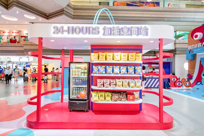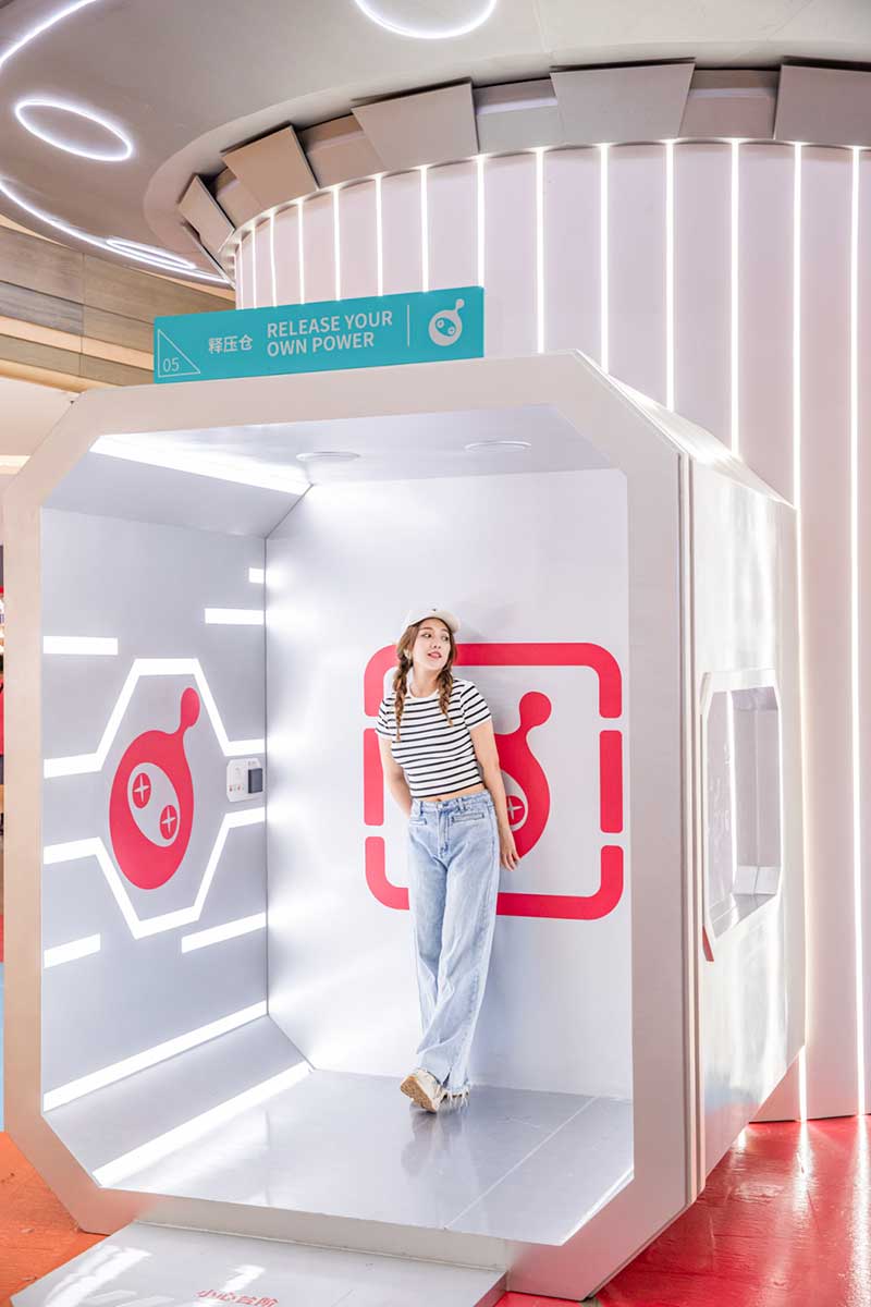 来到陌生的地球,第一件事就是适应环境,那就开启释放压力模式,在释压互动区,玩动我们的青春。如果玩累了,这里还有充能加油站随时为你补充能量,零食大家族任你选,左一包,右一包,咔嚓咔擦 通通消灭掉,并且全场都参与买一送一,满足你对所有零食的幻想。饮品的补给站也已经人气爆棚,不论是醇香的咖啡,还是激爽汽水、清新茶饮……都等你来get,让你活力满满,精彩的过完每一天。