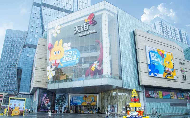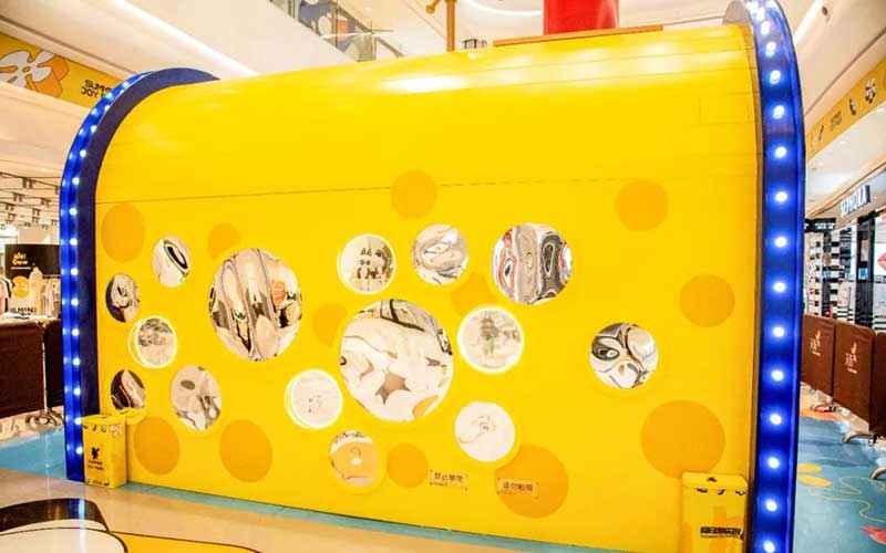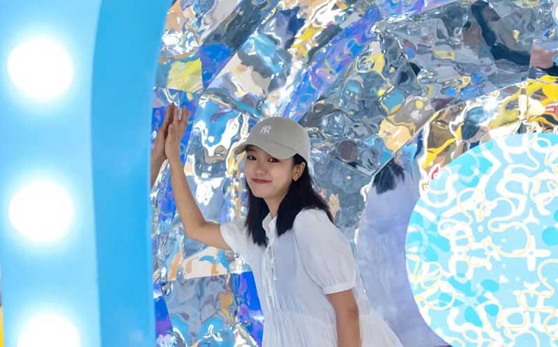 要问最最能抓住眼球的是什么?这颗金色大菠萝当仁不让!更绝的是,一走进去它竟是一间奇妙镜面屋子!镜面屋的原理是使镜面反射和灯箱画面等结合,达到万花筒的效果。圆形屏幕不断翻转花样,在经过四面的的镜面反射,让这里面变得梦幻又炫酷。不断变幻的样式,映射下来,走进其中就像是游进了阳光投射下的浅海一般。当然这里也是一个出片宝地,赶紧叫上小姐妹一起来打卡!