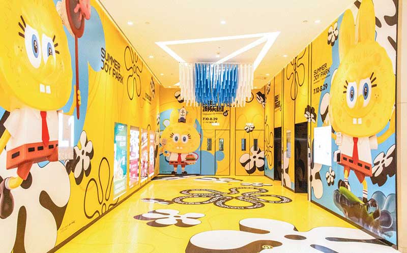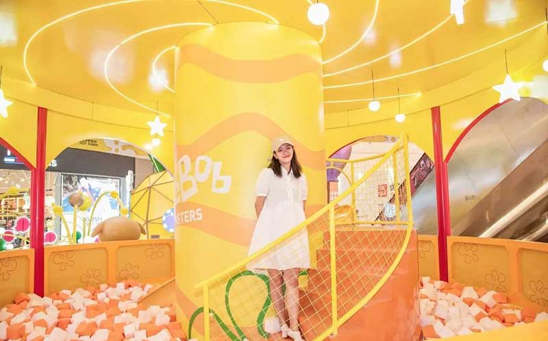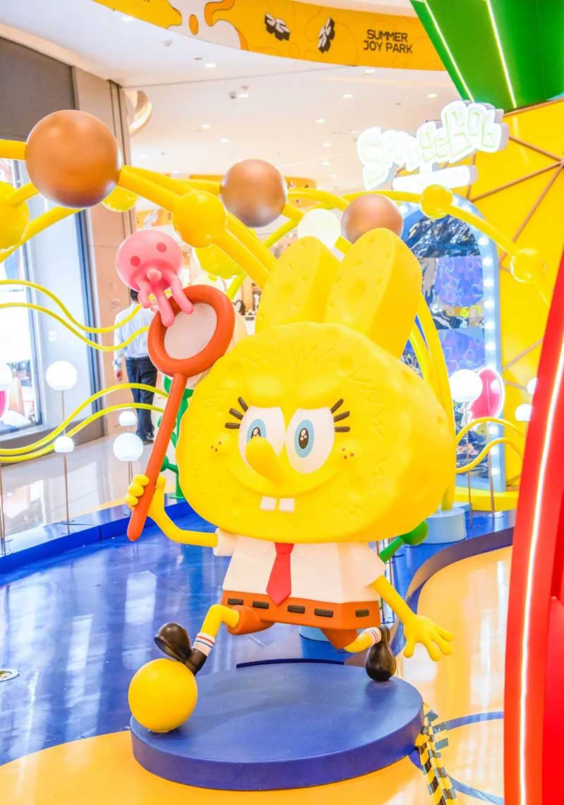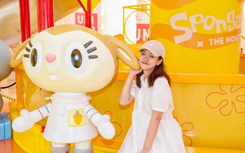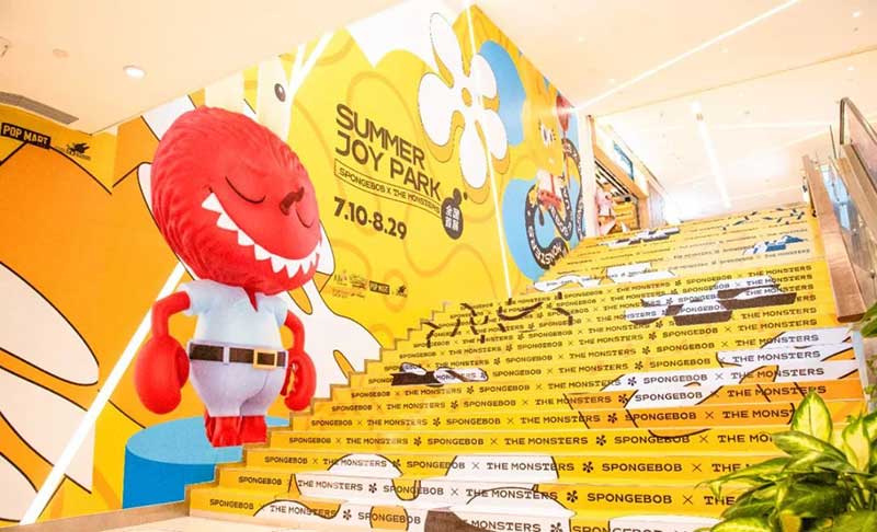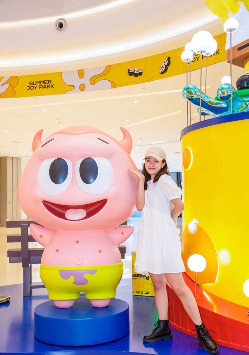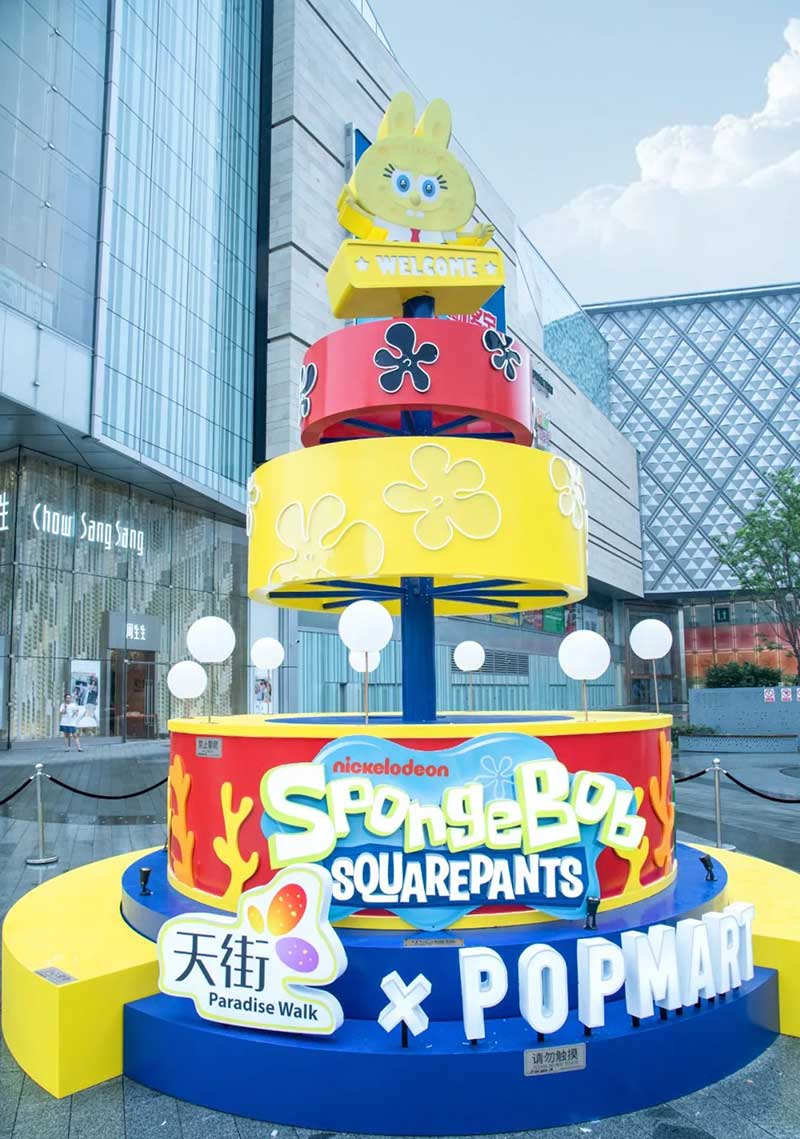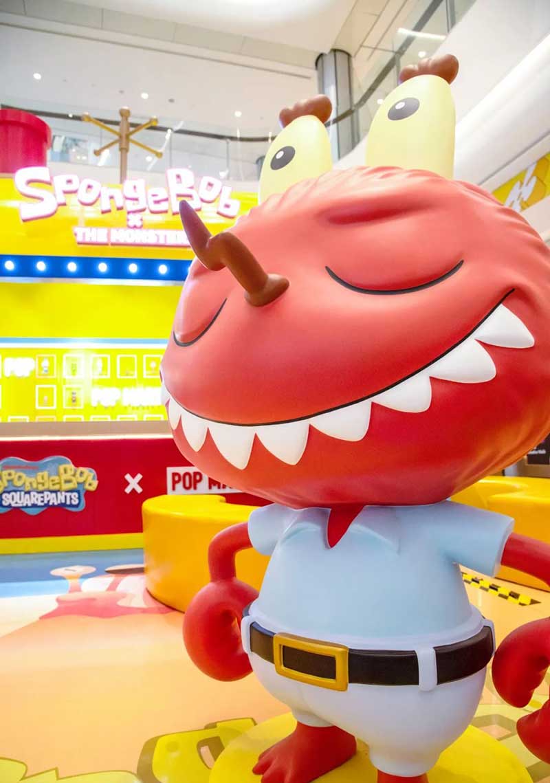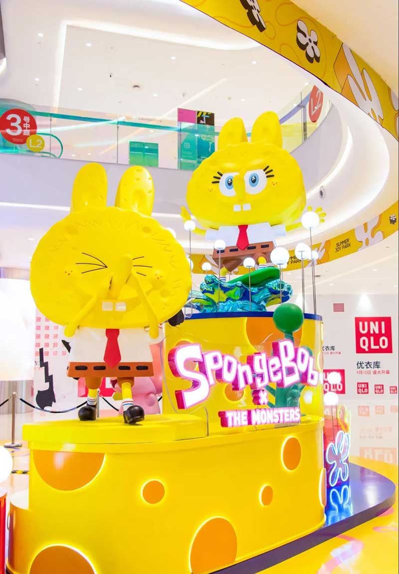 刚到一号门外就被这个酷似巨大蛋糕的大堡礁吸引住了,“蛋糕”分为四层,红黄二色交替重叠,顶部是SPONGEBOB X THE MONSTERS主题标志玩偶。这也太炫酷了吧,朋友圈九宫格C位就是它了!揣着更高的期待冲进商场后,果然不负所望,就像是来到了SPONGEBOB X THE MONSTERS的星球,电梯厅、围栏、圆柱、展区,随处可见它们的元素,眼睛都要看不过来了!