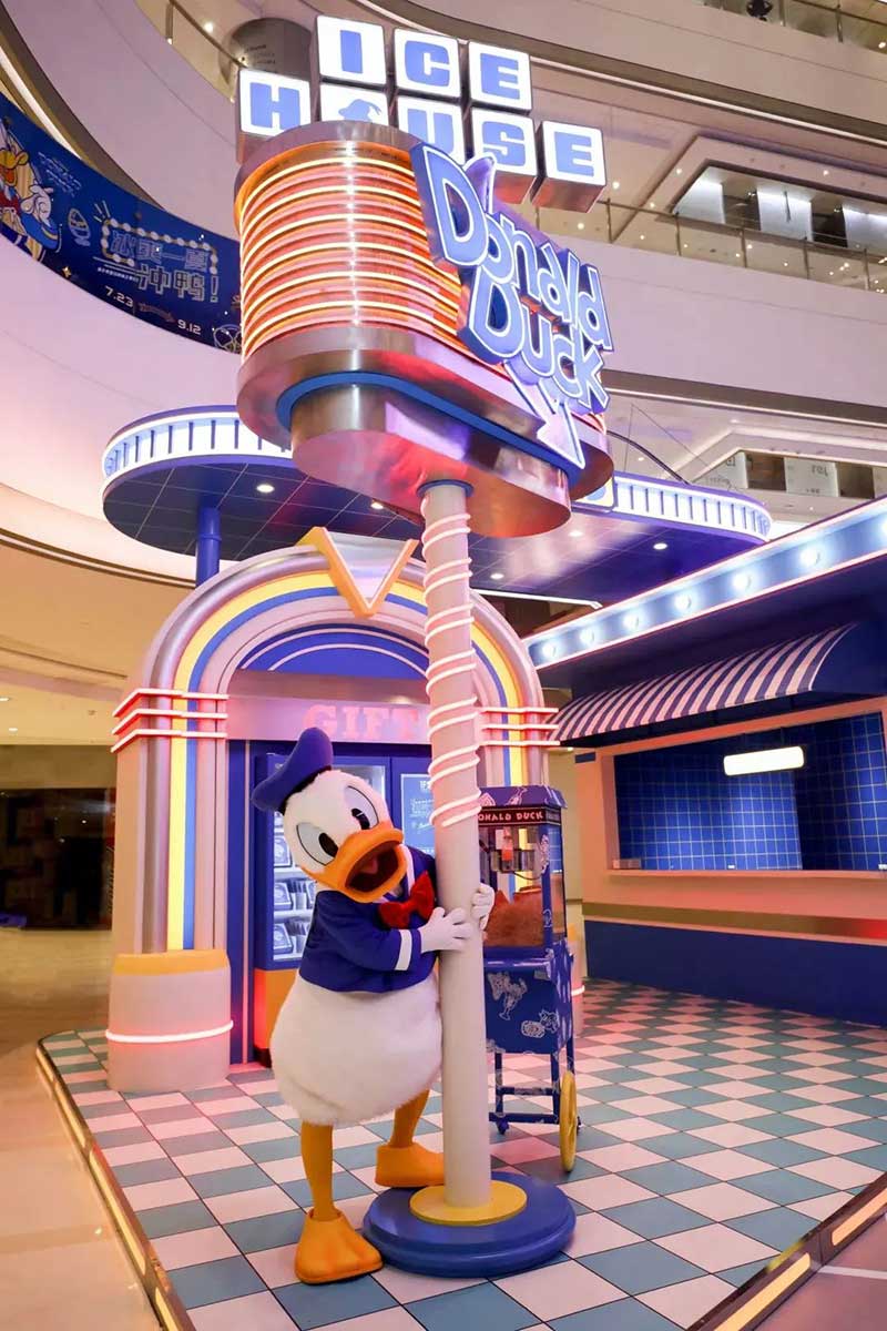 在这个超长版的夏天,人们格外需要冰爽和欢乐。成都IFS特别邀请到迪士尼大明星唐老鸭,共同为 “冰爽一夏,冲鸭!”唐老鸭夏日刨冰主题展揭开序幕。经典的蓝色水手服,磁性又幽默的声音,迪士尼的唐老鸭曾带来无限快乐与美好记忆,亦让人们在想起它时嘴角露出快乐的微笑。经典场景令人瞬间置身于美妙的电影世界,甜蜜沁人的特色刨冰更为大家奉上视觉与味蕾的双重享受,让大家体验到原汁原味的复古风情。