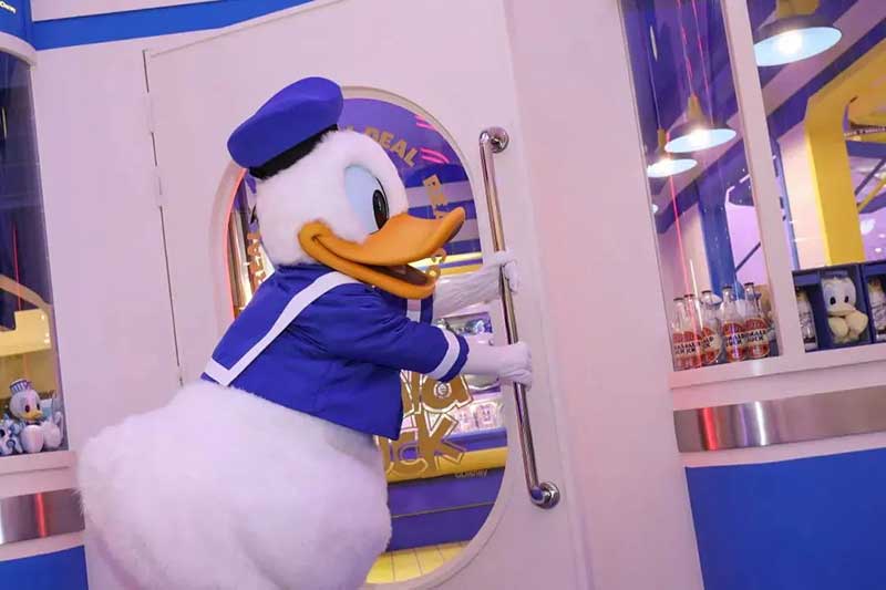 启动仪式当天,身着标志性蓝、白、黄色元素服装的舞者们,以一曲可爱又充满活力的鸭鸭舞点燃了启动仪式的火热氛围,现场的小朋友们也跟随着舞蹈开心摇摆,并收到了可爱的鸭鸭元素小礼物。在舞者的簇拥及人们的欢呼声中,人气大明星唐老鸭也空降现场与大家惊喜见面,它不仅用熟悉亲切的POSE向台下打招呼,还占据全场焦点,与众人开心合影,尽显巨星风采。已经毫不留情地开启了“酷暑模式”的这个夏天,注定将因为这座藏于成都市中心的奇妙小店,染上一抹冰凉动人的梦幻蓝。