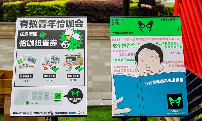 作为上海静安世界咖啡文化节的战略合作伙伴,有数青年观察局在这场咖啡文化盛典上,以“有数青年恰咖会”为主题,联合永璞、桃花姬、旺旺、应物白等知名消费品牌,通过趣味咖啡主题展、沉浸式咖啡沙龙、设置特色咖啡主题快闪店等多样形式,挖掘当代“恰咖”青年的腔调追求,传递上海咖啡文化之下的生活之味。
