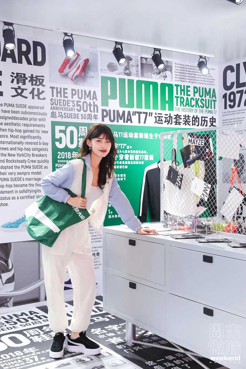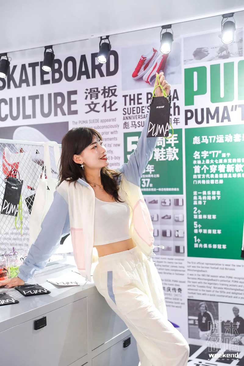 PUMA STATION经典站台是让人记忆犹新的一个空间,以白色和绿色为主要色调的空间充满了高级感,墙上的剪报细数着PUMA经典单品SUEDE鞋款和T7套装的传奇历史,就像是一个小型的PUMA历史博物馆。女宝们迫不及待地走到历史墙前,开启拍照营业模式,在这里拍照出片率超高,在历史背景的加持下,简直张张都是高质感大片!拍完照,还可以动动你的小手放松一下,在DIY Workshop充分发挥无限创意,在现场准备的随身包上增添一些时髦的“小心思”,独一无二的时尚单品即刻get!