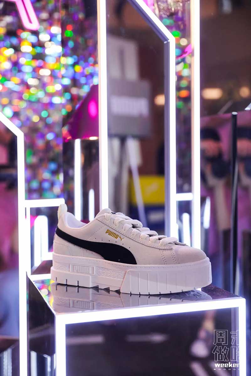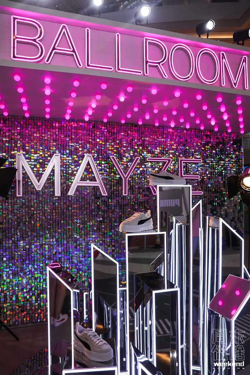 接着就到了女宝们最爱的一个区域BALLROOM 摩登舞厅了,在这里不拍够几十张照片是不可能出去的,复古闪耀的设计风格,不禁让人直呼这也太好拍了吧,在星光熠熠的衬托下,尽情绽放你们的光芒吧!除了好拍之外,在这里我们也可以看到此次PUMA专为女生打造的MAYZE鞋款,爱逛街的朋友们有福啦,可以近距离感受到这款新鞋的魅力,穿上即刻释放Z世代酷女孩们非凡女子力!最后在放大招摄影区,我们更是玩得不亦乐乎,在特定的背景下,摆出大幅度的有趣动作,即刻让你放出大招!