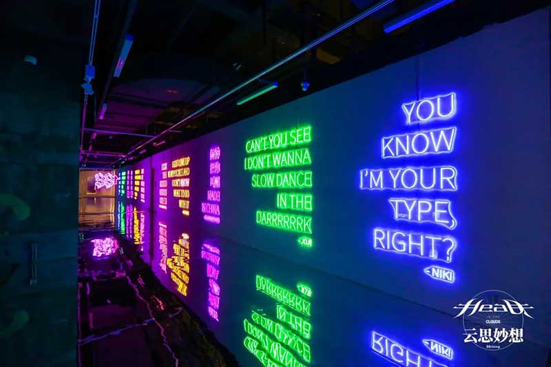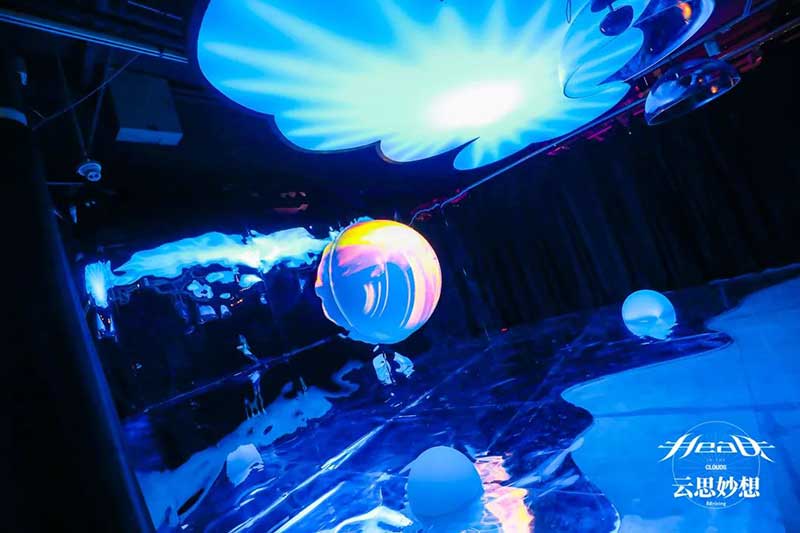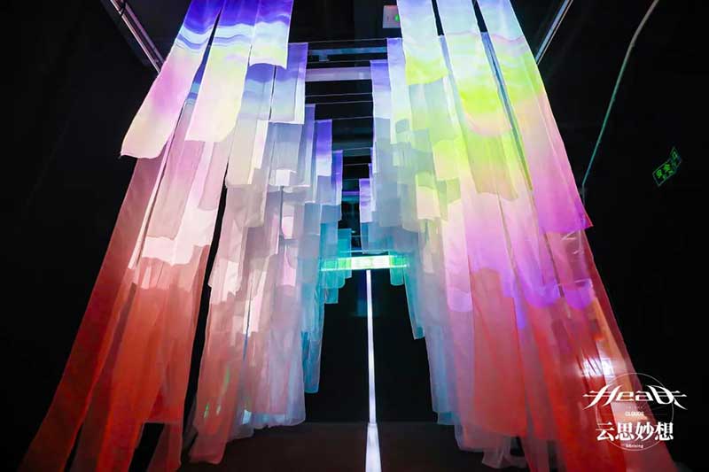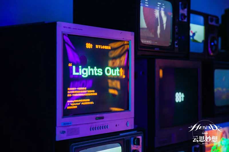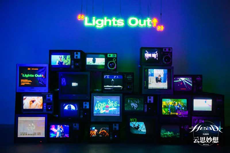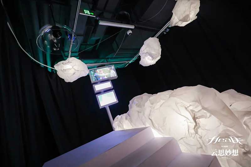 为主展示的沉浸式音乐影像体验空间。以”Head In The Clouds”系列的经典音乐作品和艺术概念为出发点进行专属空间设计,将“云朵”“红日”“”加州公路“等作为灵感缪斯,带领观者共同踏入”Head In The Clouds”的云思妙想之旅。