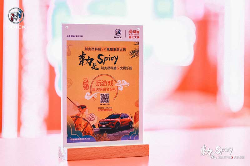 别克昂科威S与重庆知名火锅品牌珮姐重庆火锅展开跨界联名合作,共同打造火辣潮趣的燃情体验。别克携手珮姐火锅直接推出了“昂科威S当红不让套餐”,是可以直接进火锅店下单开吃的,这份专属菜单将锅底比作昂科威S,当红不让,不会让人失望;毛肚则是2.0T引擎,动力十足,直冲味蕾;S型的鸭肠则对应9AT变速箱,过分丝滑;小郡肝的“肝”用谐音梗引出五连“杆”独立后悬;还有鸭血、贡菜丸子、雪山冰等菜品与推背感、VIP架构、“红”运当头等结合,十分有趣。另外这波跨界联动还会在9月份推出昂科威S勒是Spicy专属火锅底料产品,在珮姐重庆火锅官方旗舰店和iBuick APP同步上线,昂科威S车主来一份专属火锅底料,那一定足够火辣霸气。