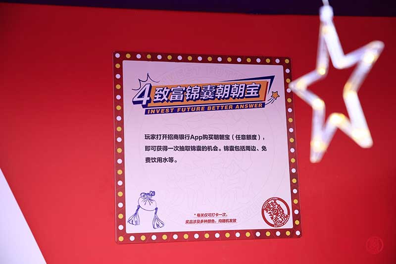 招银理财“理财潮流说”快闪店不仅免票入场,玩游戏的同时还能学到理财知识,更有集章兑换礼物的活动。这次 #理财潮流说# 快闪店,整体设计采用了招银理财的品牌色——红色,结合时尚元素点缀,打造出潮流的调性。平时枯燥乏味的理财知识,被融入到趣味游戏当中,让你在娱乐中涨知识,同时现场还有客户经理答疑解难,理财小白也可以破解财富密码。