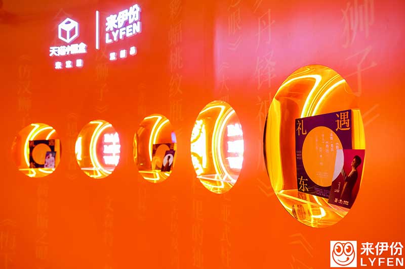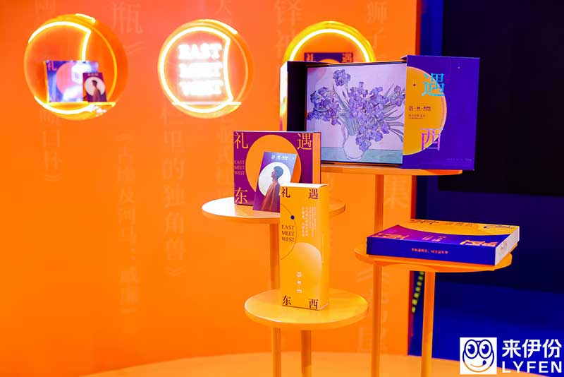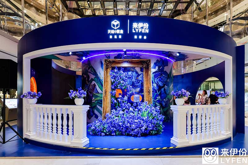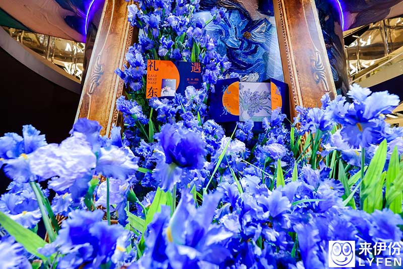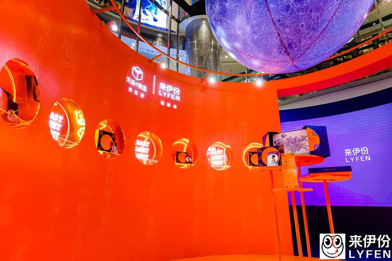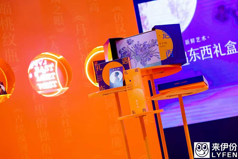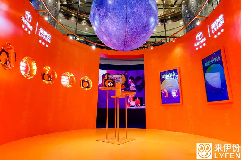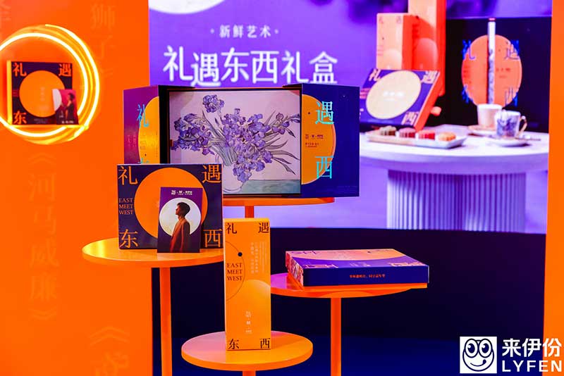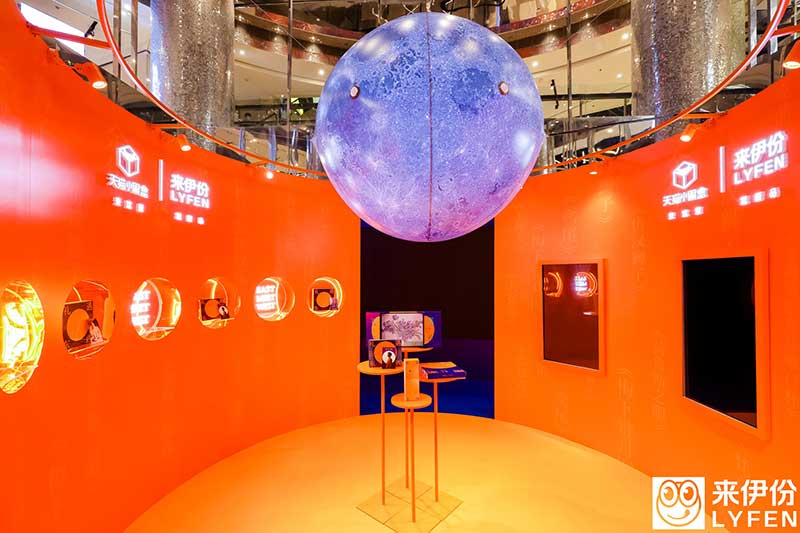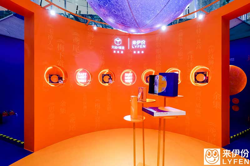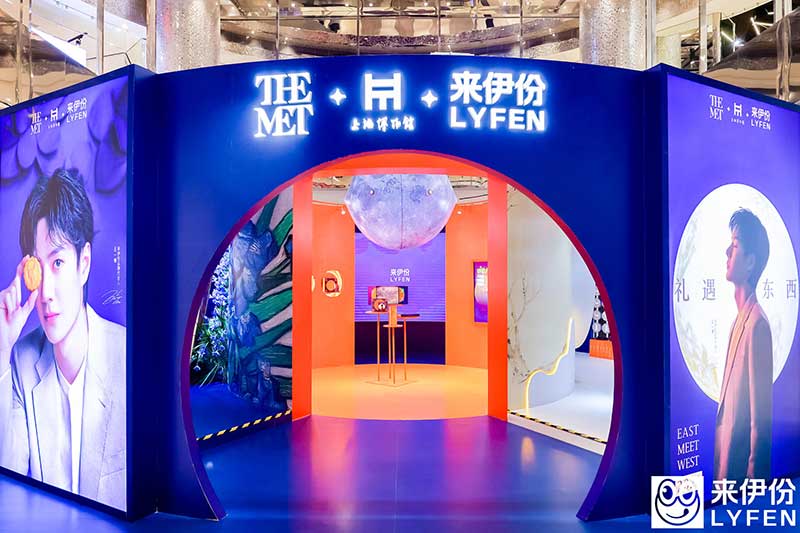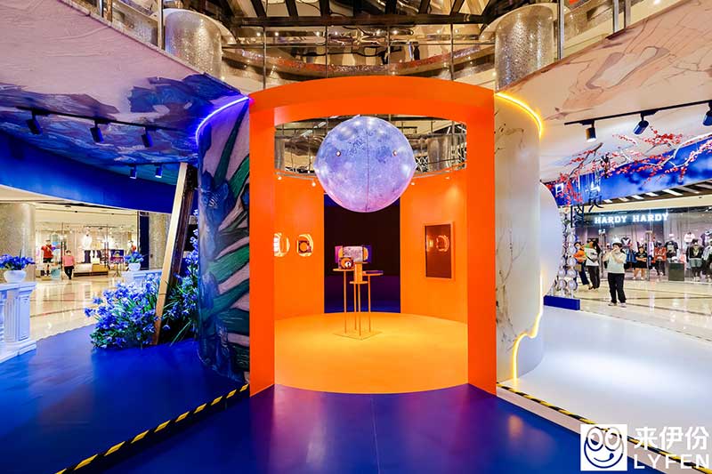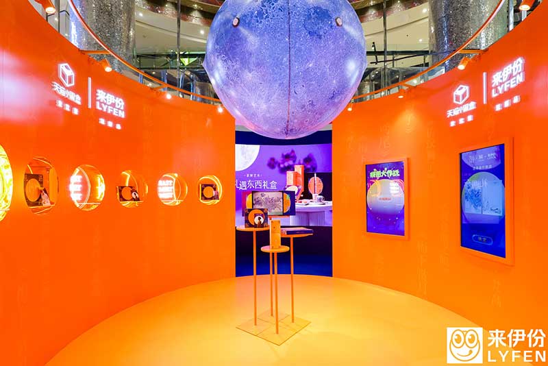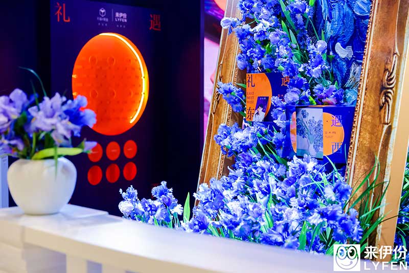 本次的来伊份“礼遇东西”中秋限时快闪店坐落于上海静安大悦城南座,以深邃的星河蓝筑起一座小型博物馆,集鲜潮美食、博物馆藏与一体,打造出沉浸感“视、听、玩、乐”多维度感官盛宴,在工作日便吸引不少顾客前来参观打卡。