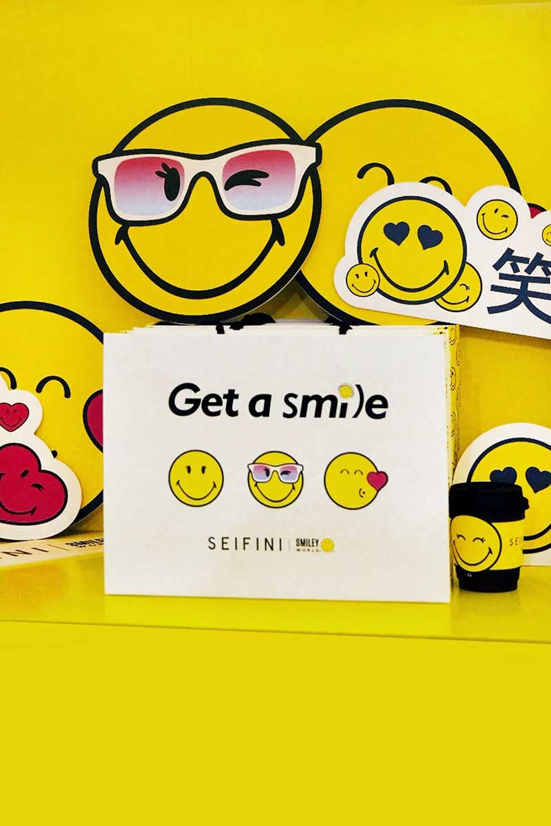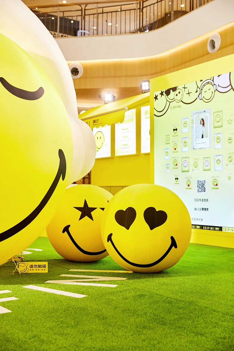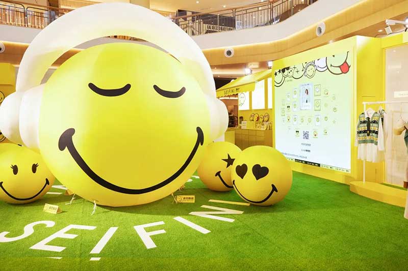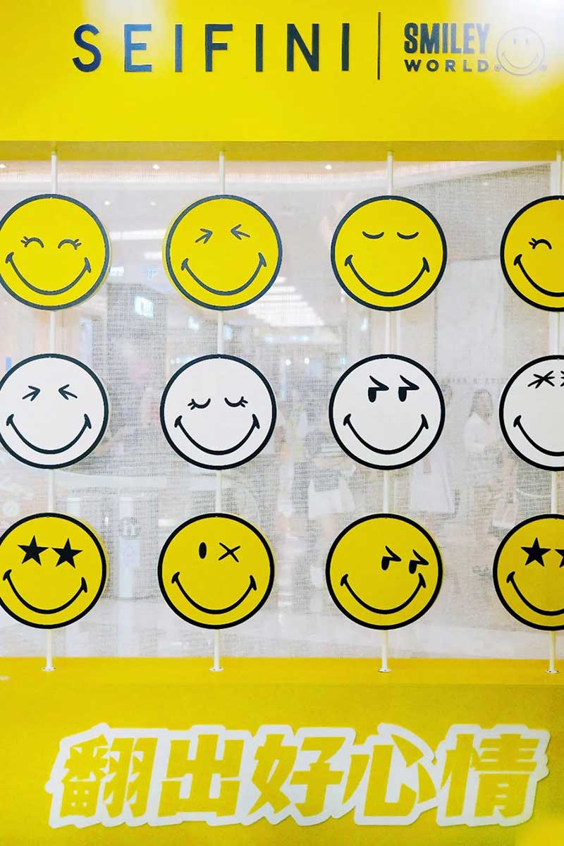 诞生于70年代末的笑脸icon从表情符号到流行文化引领者足足火了半个世纪,深受大家喜欢的SMILEY已经成为全球现象。而诗凡黎×SMILEYWORLD的强强联手,又会给时尚圈带来什么惊喜呢?好心情停靠站限时店已在杭州湖滨银泰正式开启!黄白相间的明亮温暖色调,伴着随处可见的笑脸装置,商场仿佛陷入热情可爱的快乐海洋。