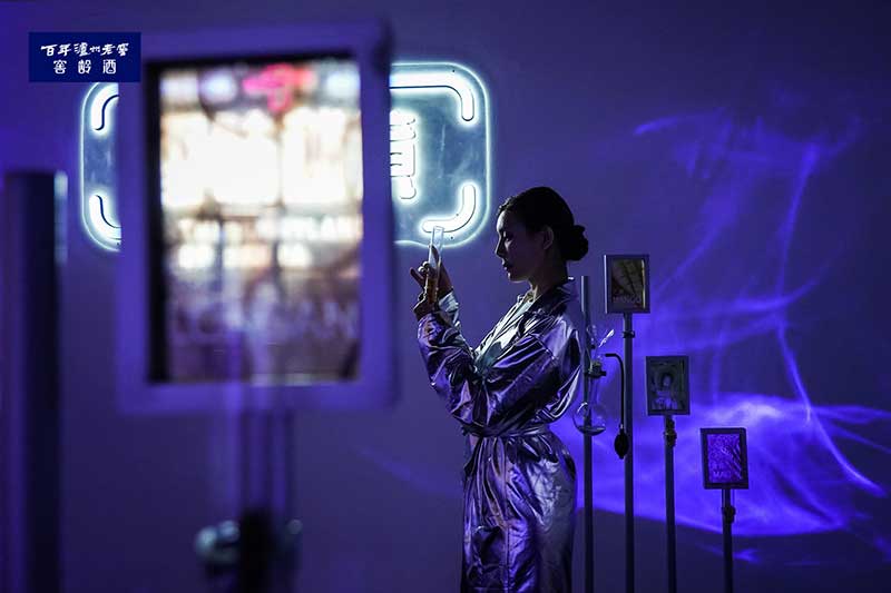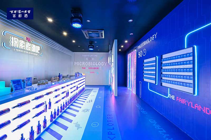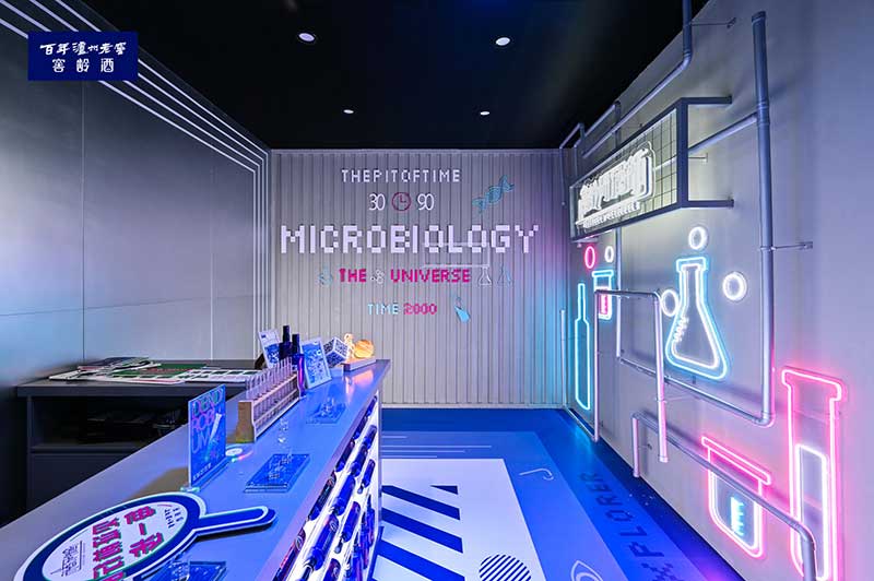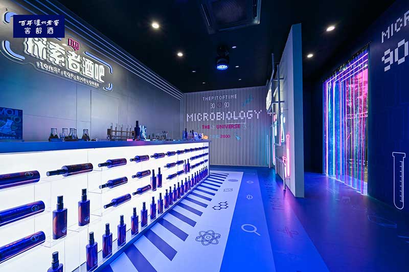 “窖龄研酒所”入驻石家庄潮流聚集地裕华万达广场,吸引了很多消费者走进这个充满神秘科技感的“蓝色盒子”,跨越时间与空间的限制,体验白酒的全新创意玩法。在开启沉浸式体验的同时,“窖龄研酒所”还通过潮酷、新奇的探索方式解锁一瓶好酒的品质密码,让消费者重新认识中国白酒。此次“窖龄研酒所”由“时光窖池”、“微生物宇宙”、“香味秘境”以及“探索者酒吧”四大空间组成的“窖龄研酒所”神秘感十足,进一步加深了探索者沉浸式体验的乐趣。
