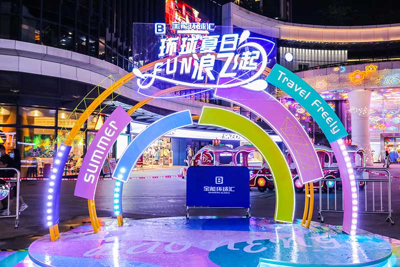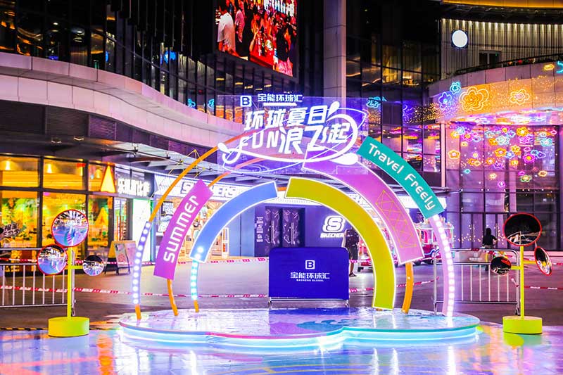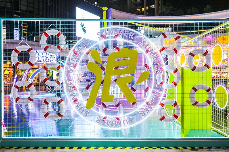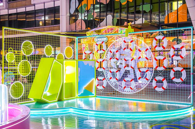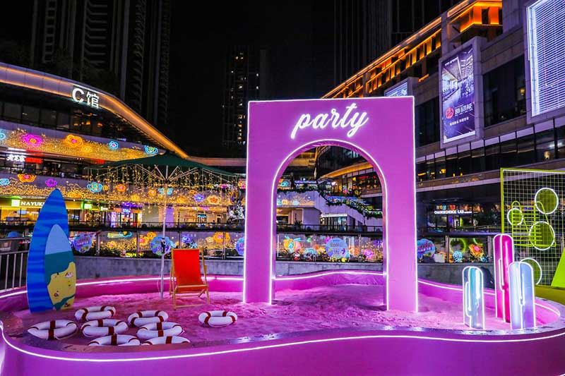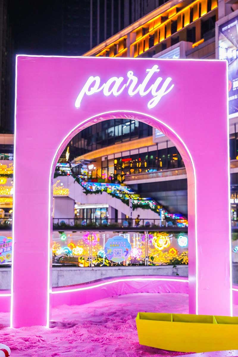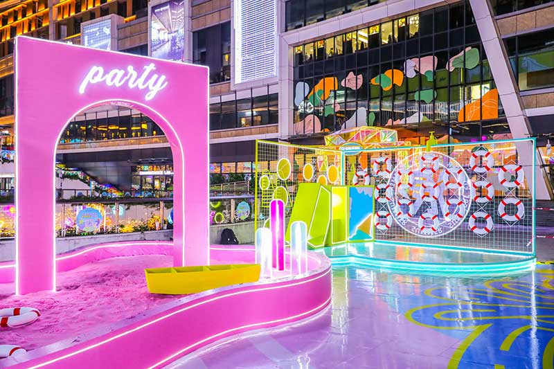深圳空降一座FUN浪岛屿,在宝能环球汇内广场盛大开启!潮人们闻声而至,以快乐之名,开启一场夏日“玩趣狂欢”之旅!踏入这座流光溢彩的神秘岛屿,视线所及之处皆是清爽的海洋元素:粉色沙滩、遮阳伞、冲浪板…还原了悠闲的海边度假场景整个打卡点都是粉色主题,简直少女心爆棚!沉浸在艺术与潮玩的空间,甜蜜、惬意、欢愉涌上心头,那颗想“浪”的心,也终于得到释放。