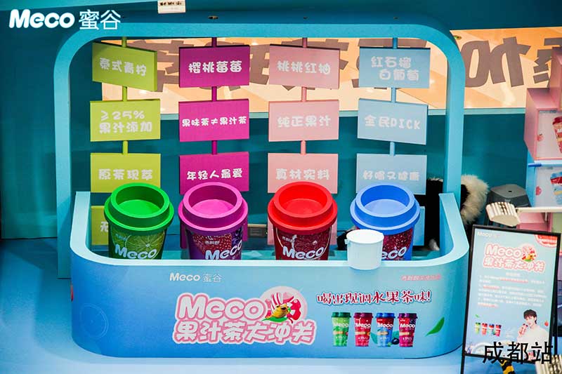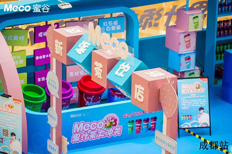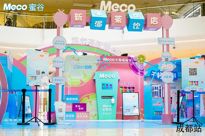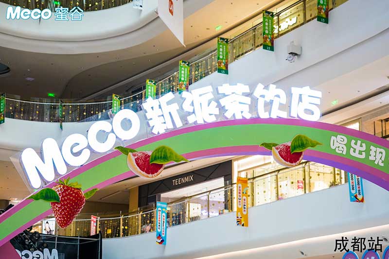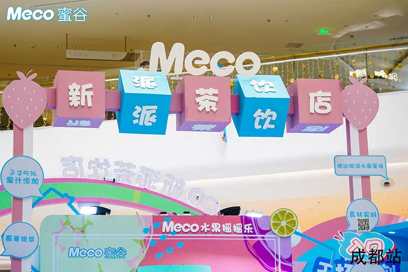 Meco新派茶饮店·成都站坐标龙湖成都滨江天街,在这里不但可以打卡免费喝Meco蜜谷果汁茶,还有超多互动和惊喜福利等你解锁。