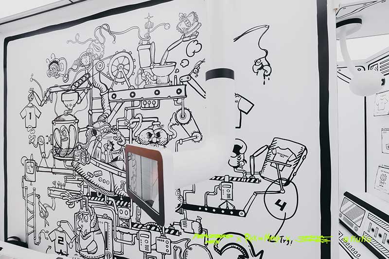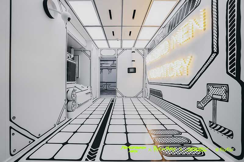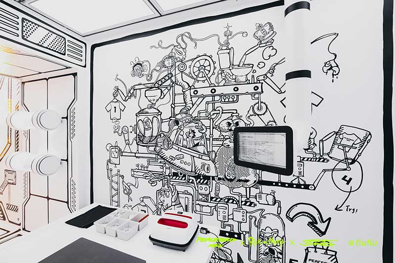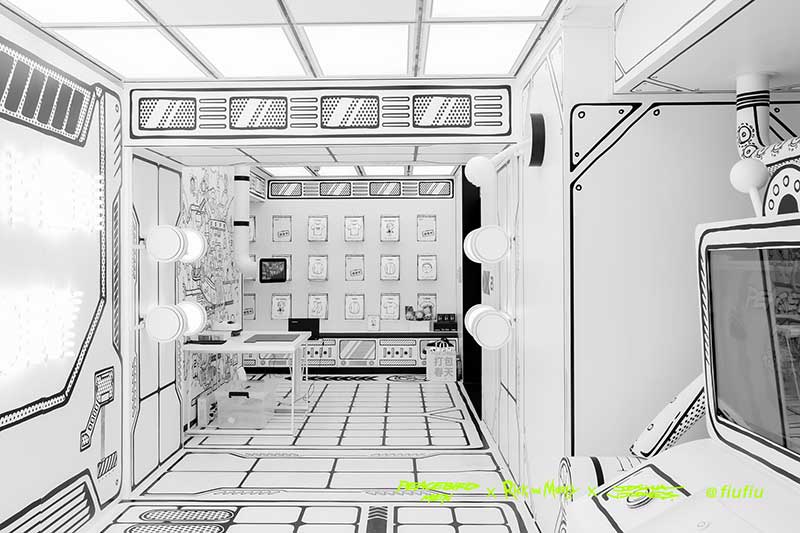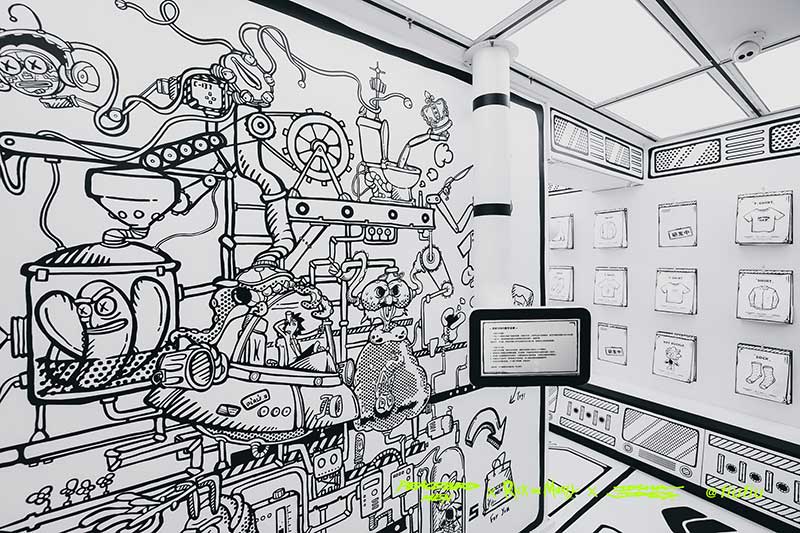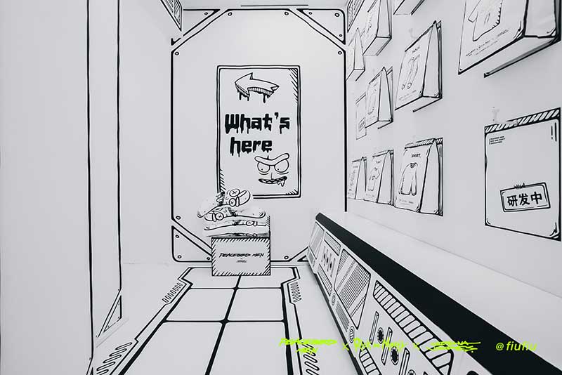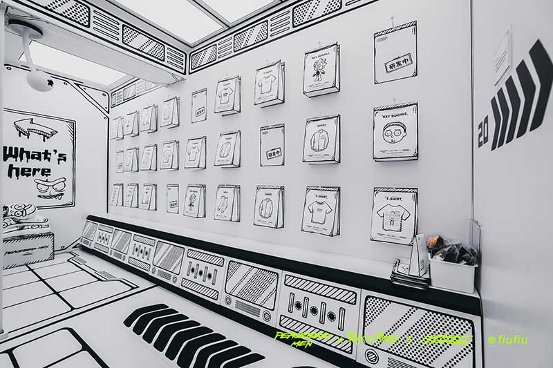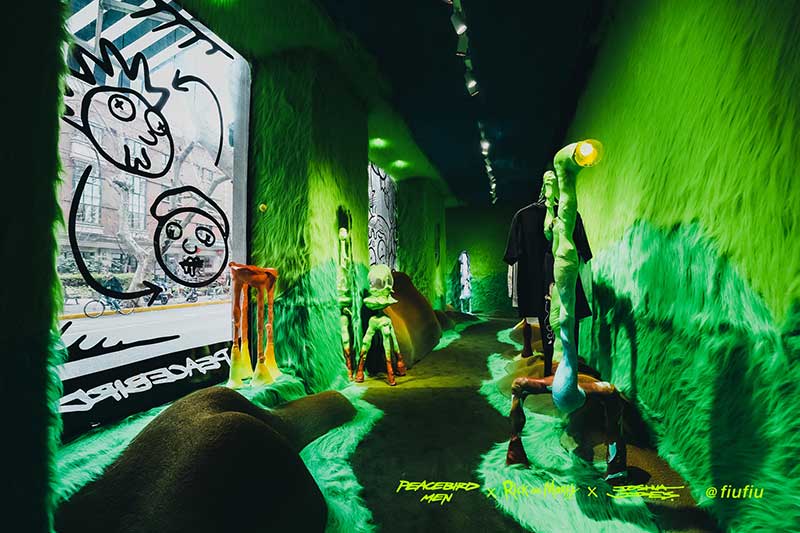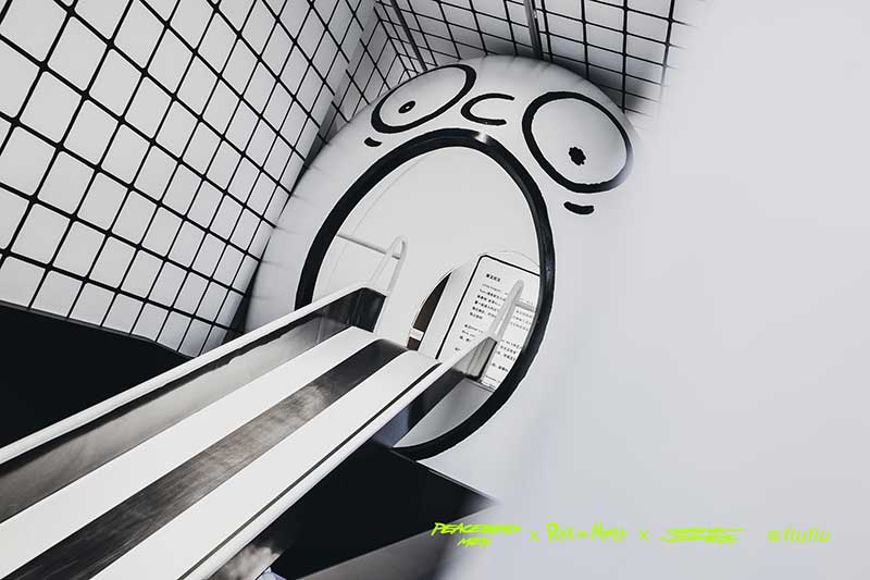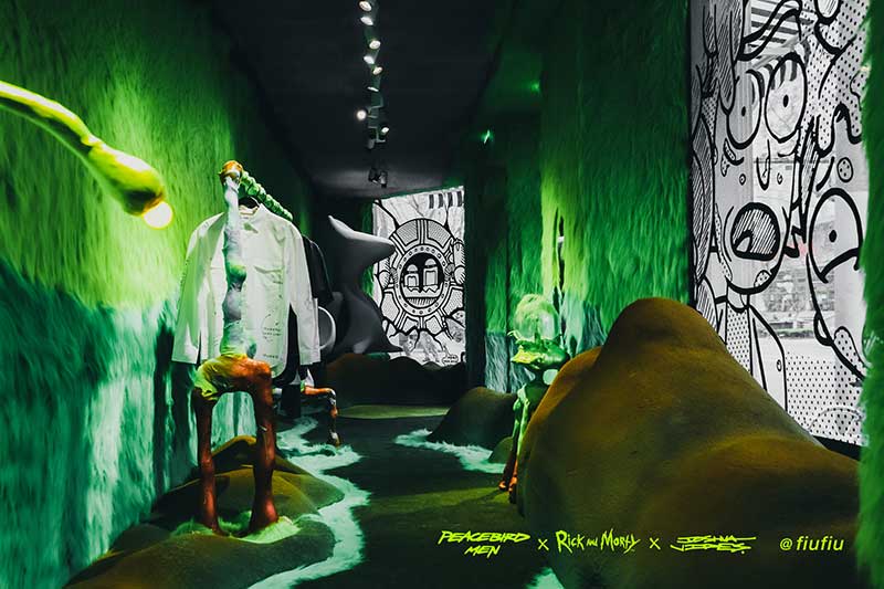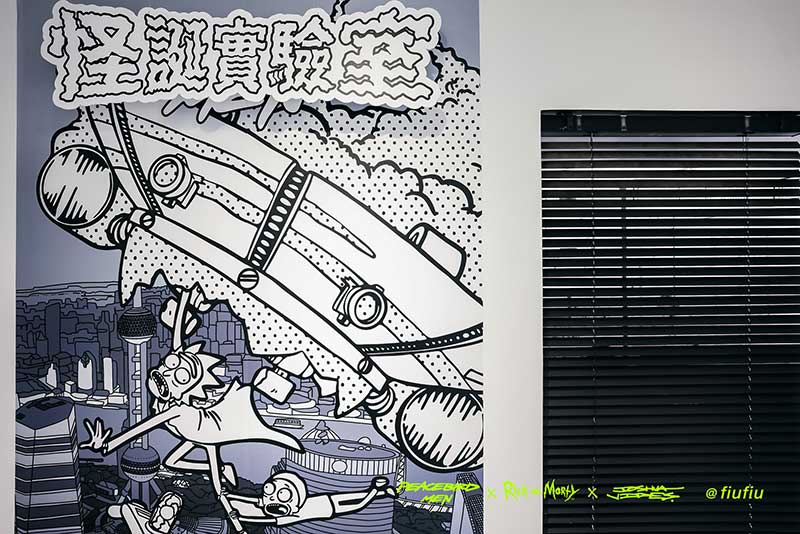 Peacebird man 和 视觉艺术家Joshua Vides强势联合Rick and morty打造异次元世界 ——瑞克和莫蒂#怪诞实验室#,位于地球魔都的[Fiu Gallery]由3D世界直接被切换成2D,场馆变成了化学实验室,向地球人类发送探险信号速来开启一段荒诞之旅!