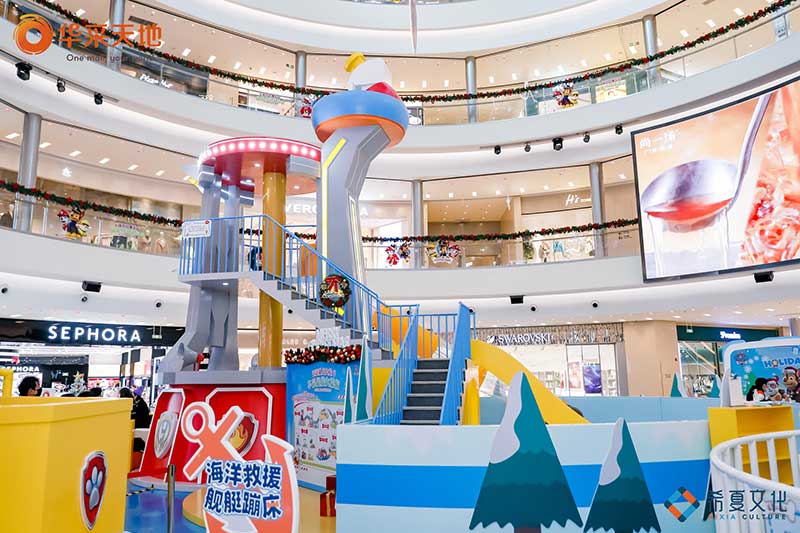 汪汪队立大功华采超能大探险在华采天地集结展开超能大探险,和汪汪队一起探险!用智慧、勇气、合作攻克重重关卡,解锁无限活力与欢乐吧,而作为团队中的 “安全可靠”担当高达6M的巨型阿奇更是在集结站等候,速来打卡吧。