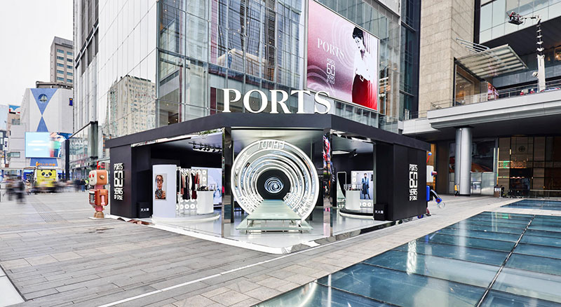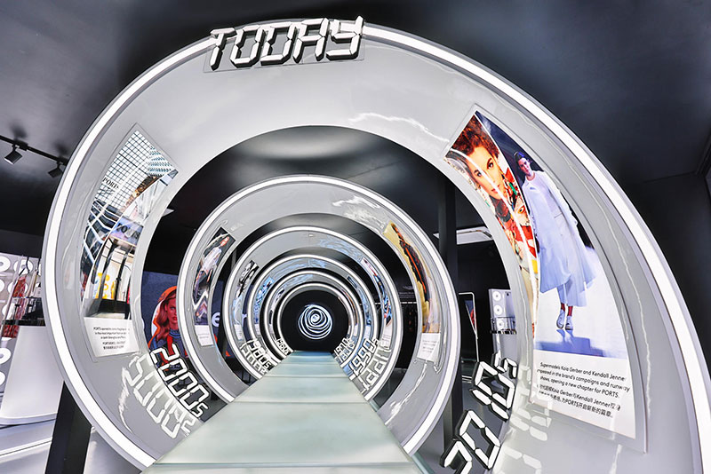 深入时空探索之旅的内涵,限时快闪店内部布置以时空旅行为灵感,以独特视觉效果打造时空隧道,创意构筑沉浸式探索空间。观者化身时空旅人,在PORTS时空旅行大使“Luke”和“Ruby”的引领下穿梭于奇妙时空之旅,探索PORTS 60年间的发展历程和品牌故事,品味PORTS蕴藏在时光里的至臻匠心。