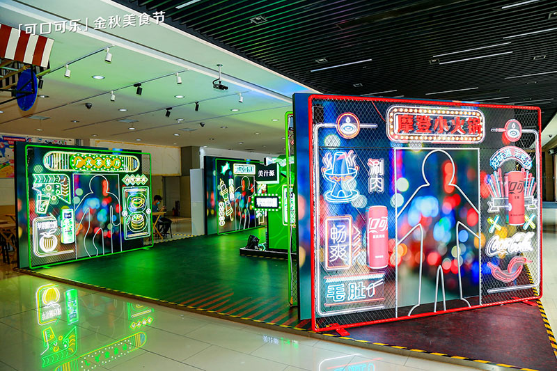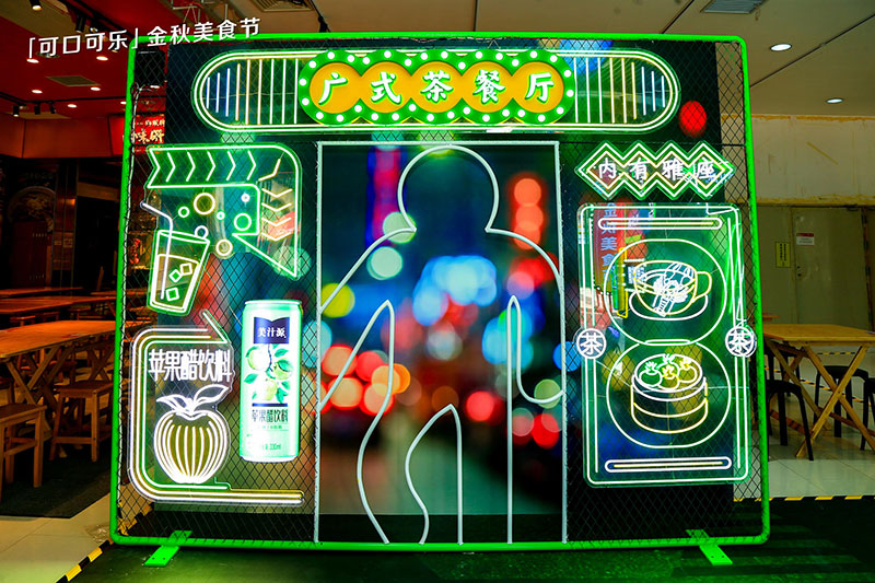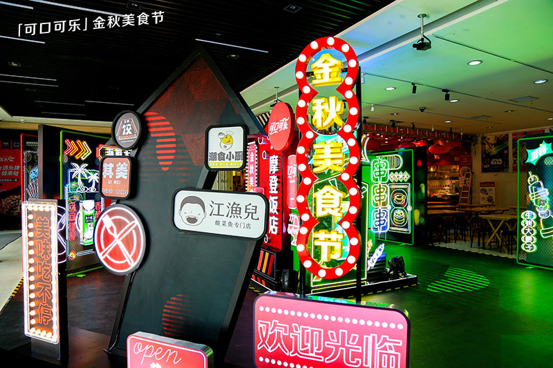 复古摩登的浓郁灯光,霓虹灯带穿梭其中,灯火阑珊的闪烁灯牌,好似闯入80年代的港风小巷,着实是一个名副其实的摩登胜地。如果你想度过一个独特的假期,如果你想尝遍无数美味,如果你想拥有惊艳朋友圈的绝美大片,可口可乐金秋美食节就是不二选择。