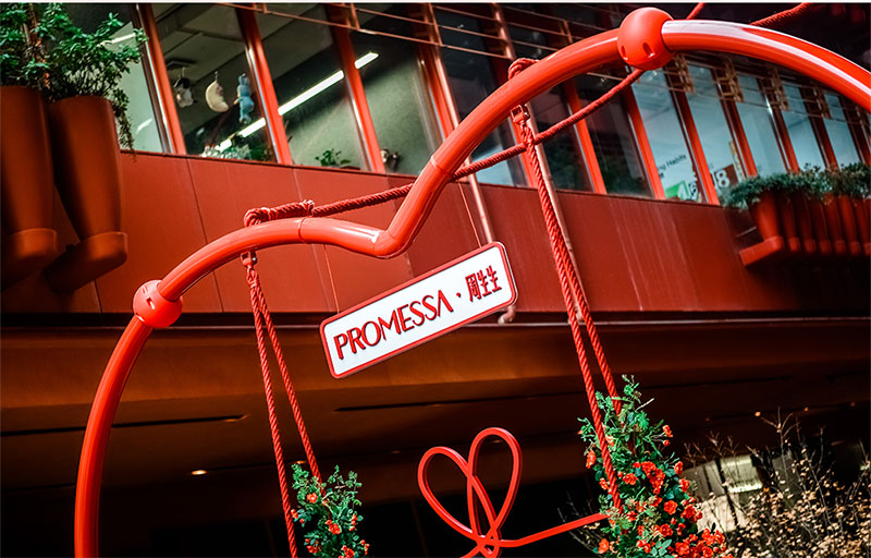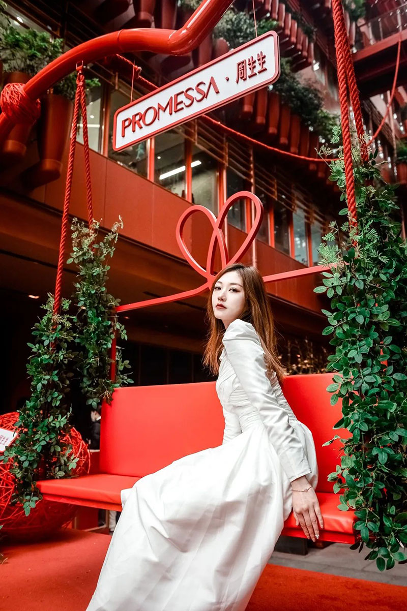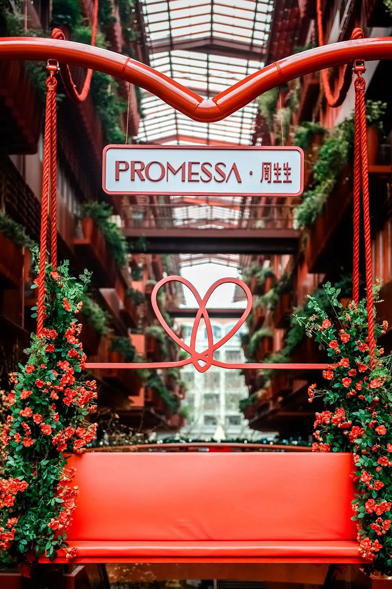 PROMESSA·周生生于上海新天地举办一场大型PROMESSA「缘分红绳秋千」打卡活动,传递【缘分】与【浪漫】,让大家在忙碌的日子中找回属于自己的节奏,在舒适的环境里享受遇见彼此的美妙,#爱你生生不息 与你定誓未来#。