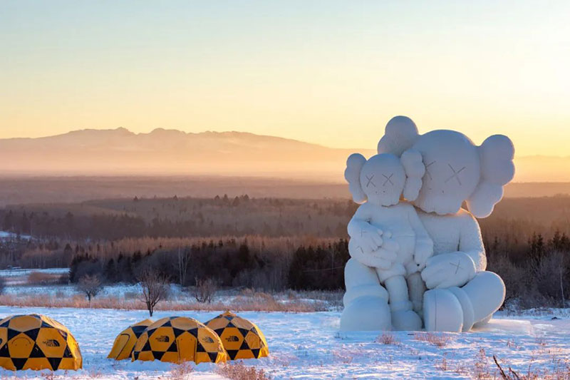 The North Face X KAWS在长白山带来了《KAWS:HOLIDAY》快闪主题展,以及The North Face XX KAWS联名系列的全球首发。整场活动其实可以分为2个部分,其一是巨型COMPANION雪雕的展示,以icon的形象来制造话题,其二是The North Face XX KAWS联名系列的全球首发,以快闪的形式来做发布。