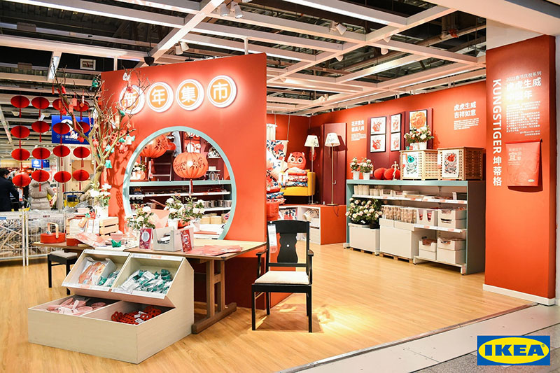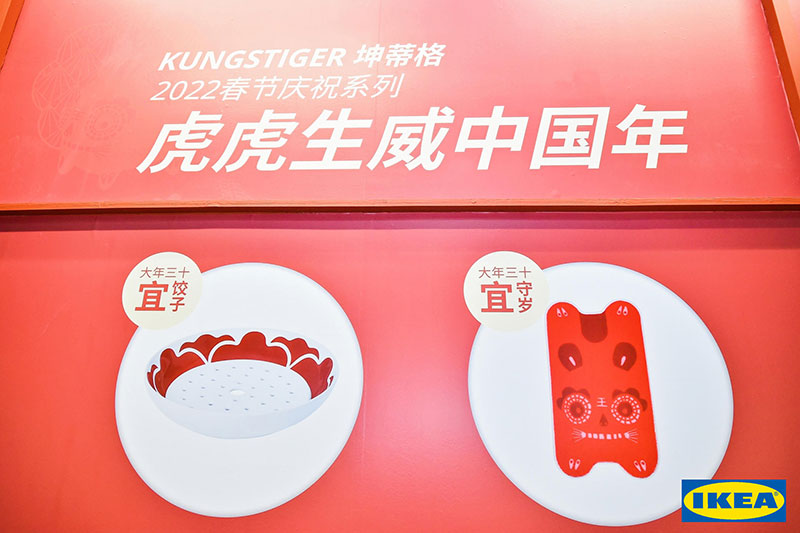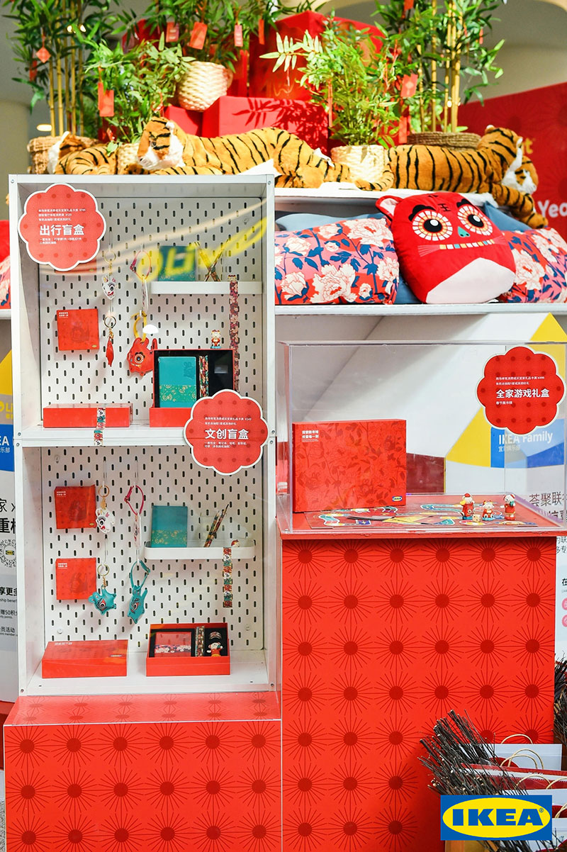 从进门开始就发现宜家变“红”了!传统中式的国潮风展间,热情奔放的红色带着浓重的年味,随处可见的2022年限定的“小脑斧”系列也太可爱了!宜家以红色为主题的新春展间,让你边打卡边种草。张灯结彩的新春装饰,让你提前感受虎虎生威的年味,来宜家轻松打造年味国潮风的大片。宜家的新年市集太喜庆了,各种各样新春的红色小物件,很多都带着“虎”的元素,看完之后开始迫不及待的置办年货了!从窗花到摆件,还有地毯,都一应俱全。给家里的客厅点缀一点红色,便能给家穿上“新衣”,新年新气象!