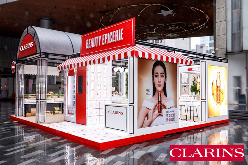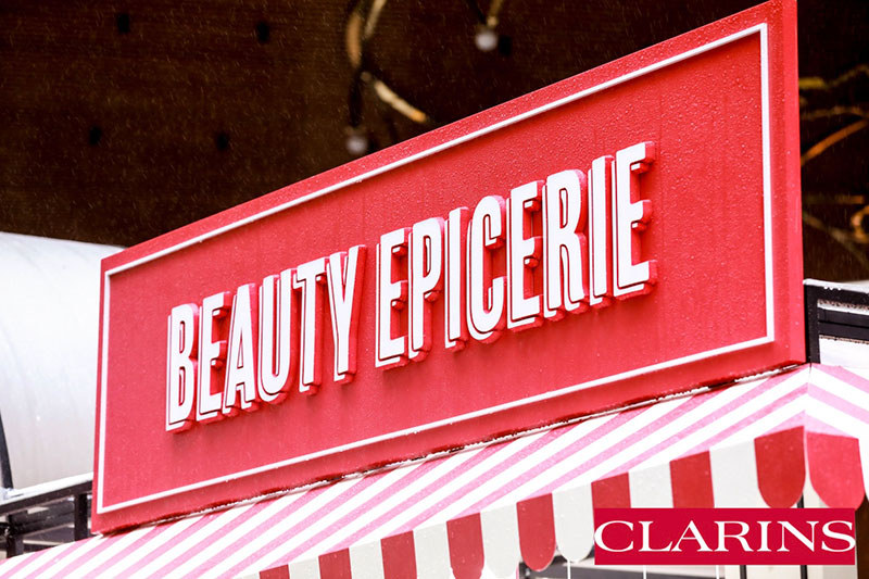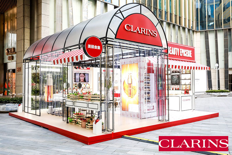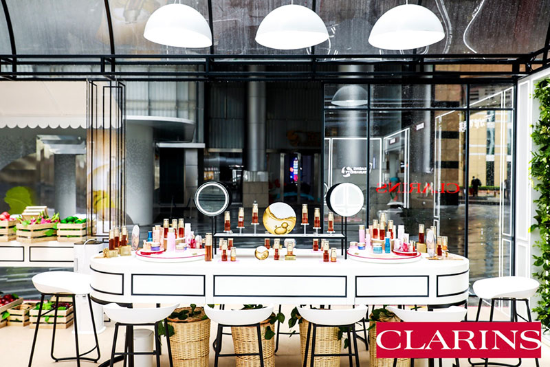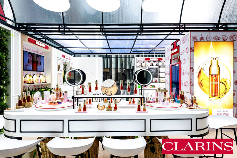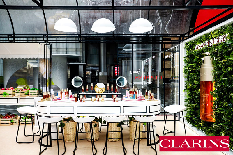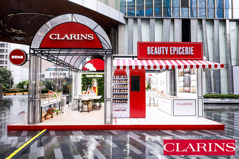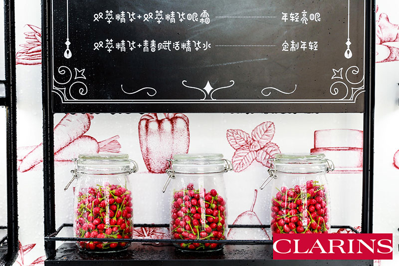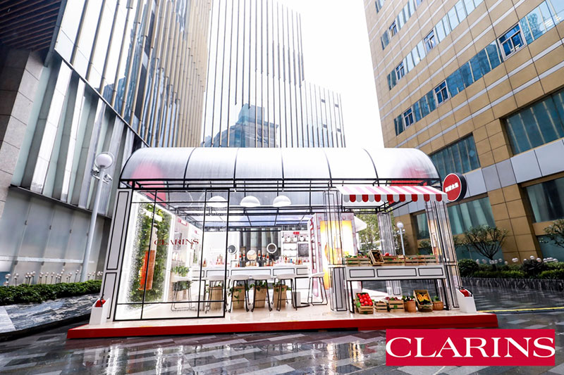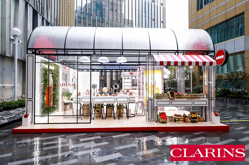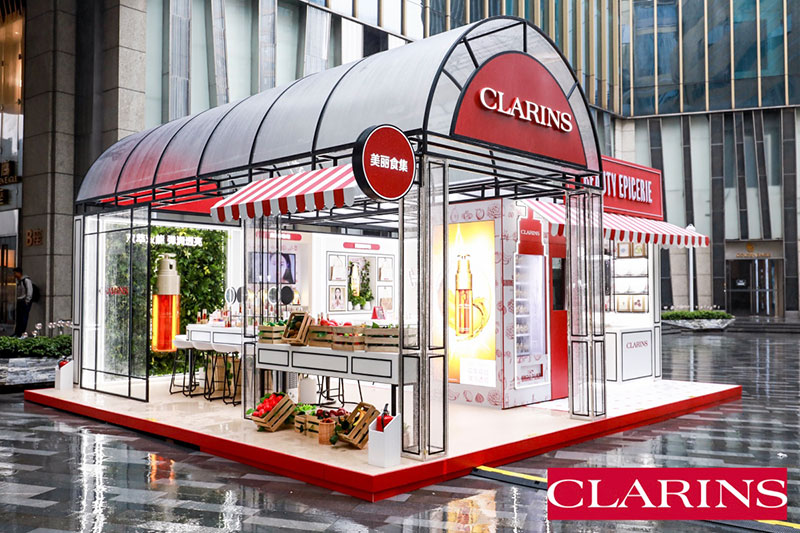 唤醒年轻力量,娇韵诗法式美丽集市开业啦,现场搭建满满的法式风格,法式点缀的集市feel。