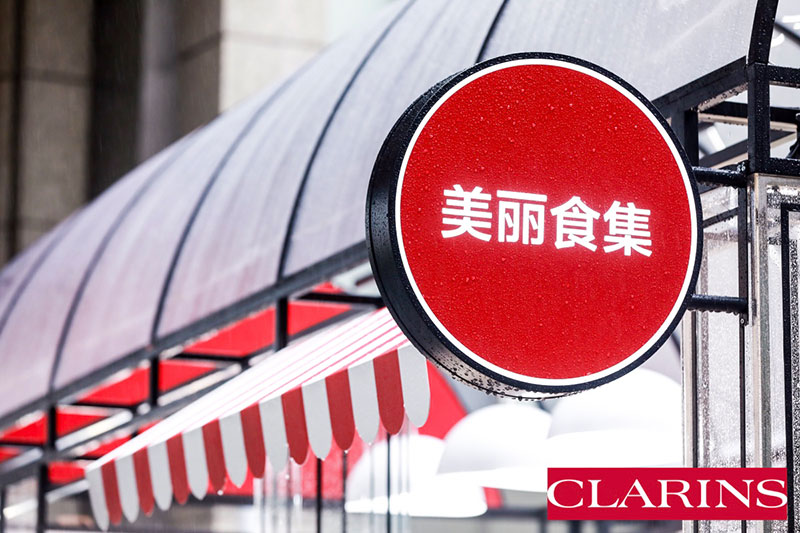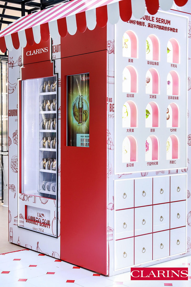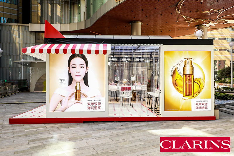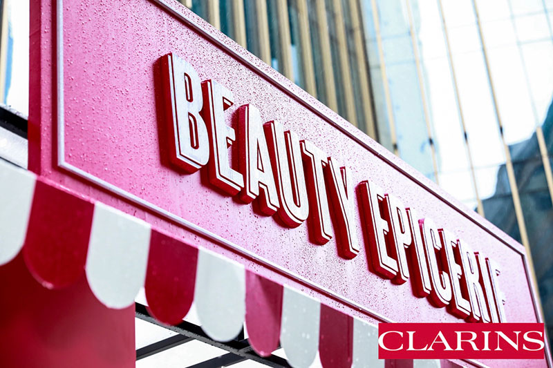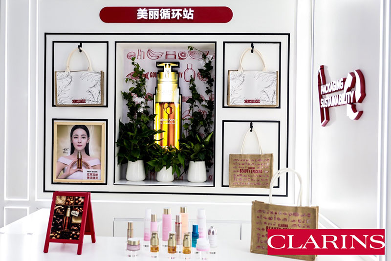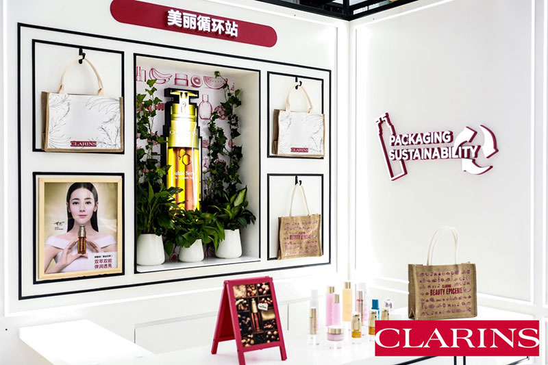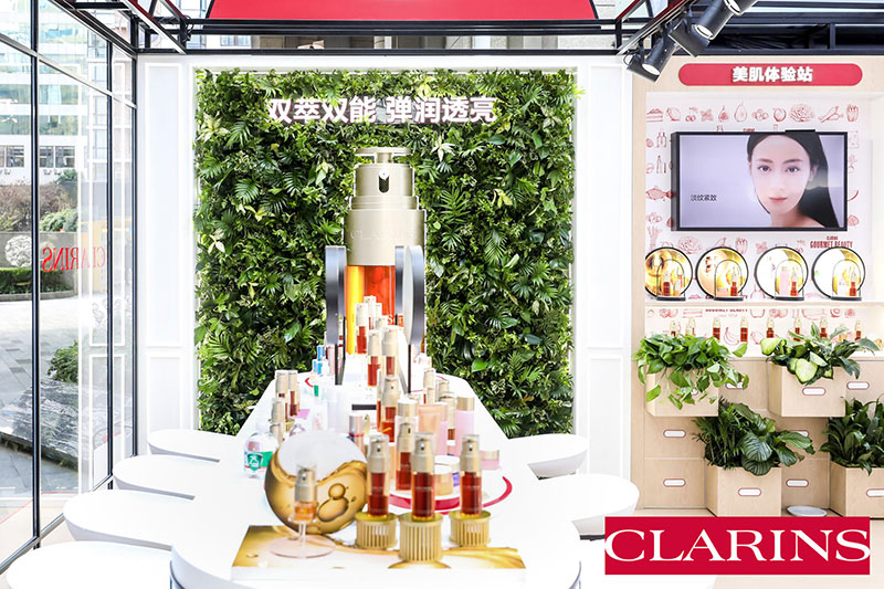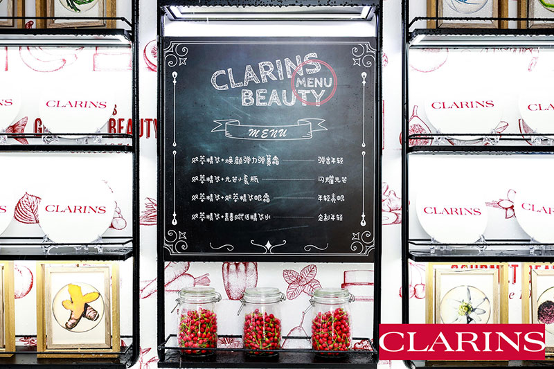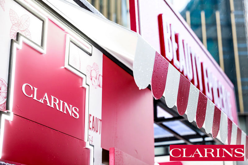 唤醒年轻力量,娇韵诗法式美丽集市开业啦,现场搭建满满的法式风格,法式点缀的集市feel。