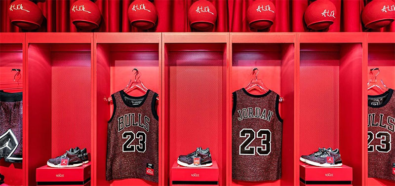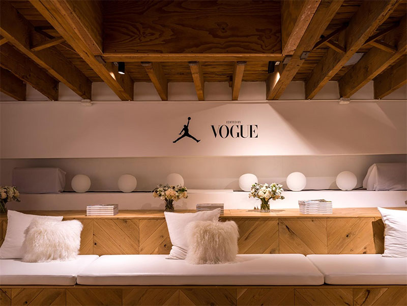 在格兰特街的一个隐蔽角落里的快闪店里,耐克和《时尚》融合在一起:篮球上印有温图尔的签名和 飞人乔丹的标志,更衣室风格的空间中重新设计了毛圈布,而在楼上为需要恢复活力的客人提供了带按摩椅的安静空间。