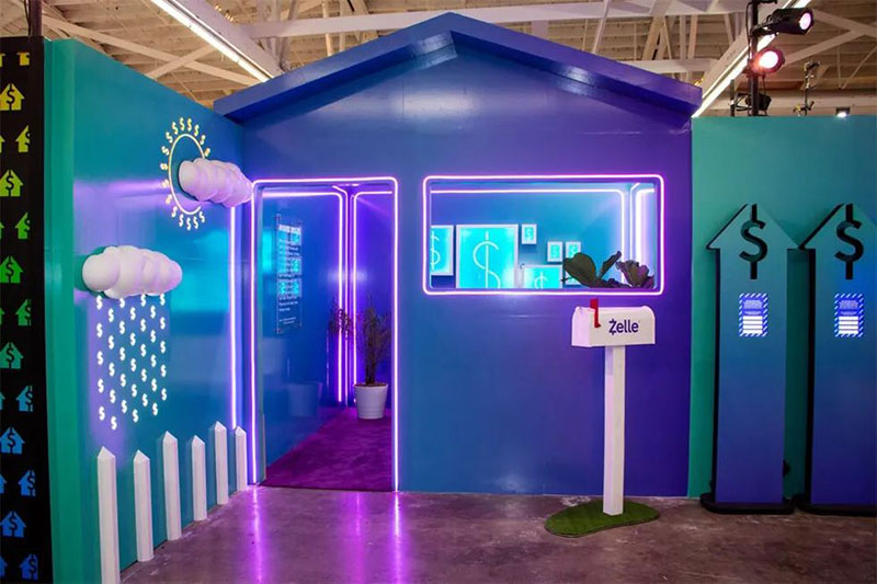 “资金流向”区域是与合作伙伴Zelle(数字支付网络)创建的,里面有三个装置,直言不讳地说明了在人生的重要时刻和经历中,钱的重要性。在“看到你的财务未来”板块帮助客人设定并形象化他们的目标。它有一个以金钱为主题的无限房间和互动墙,客人可以在那里分享他们的财务希望和梦想。“Stacks beacons”告诉客人,我们可以帮助实现这些梦想。