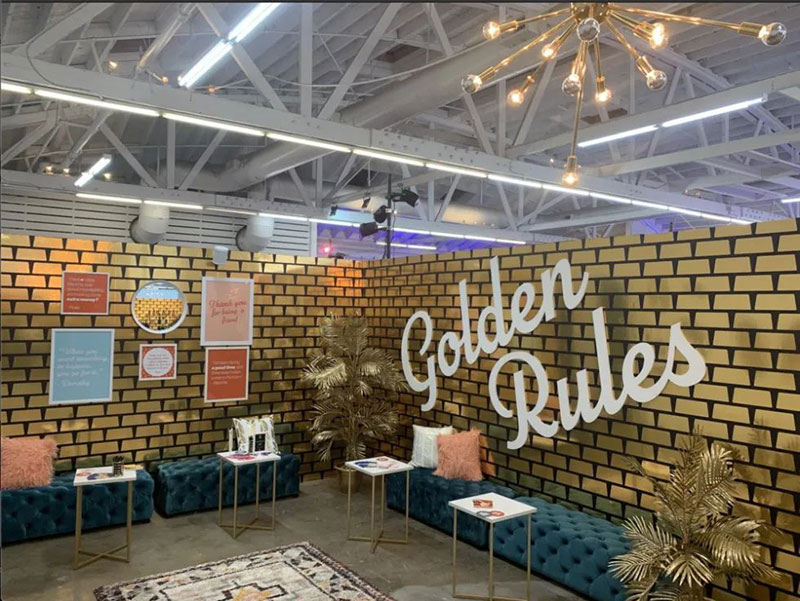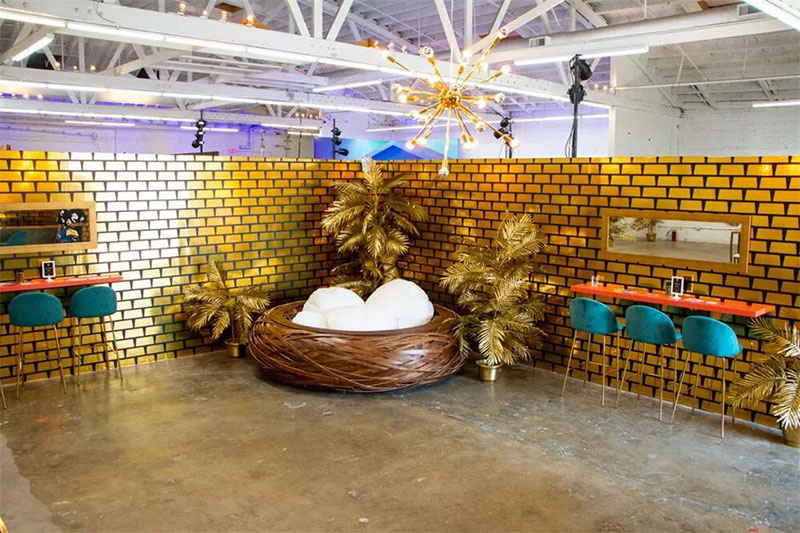 “黄金吧”是与Day Owl(是可持续发展的背包品牌)合作设计的,让客人们有机会放松,讨论他们的经历,并为他们的未来理想的财务状况而干杯。在这里,客人可以在超大的“窝巢”拍照活动中思考自己未来的积蓄,从“黄金女孩”那里获得黄金建议,填写定制明信片。“黄金吧”还提供了强大的节目,包括直播播客,演讲和研讨会,这些活动将持续5周。