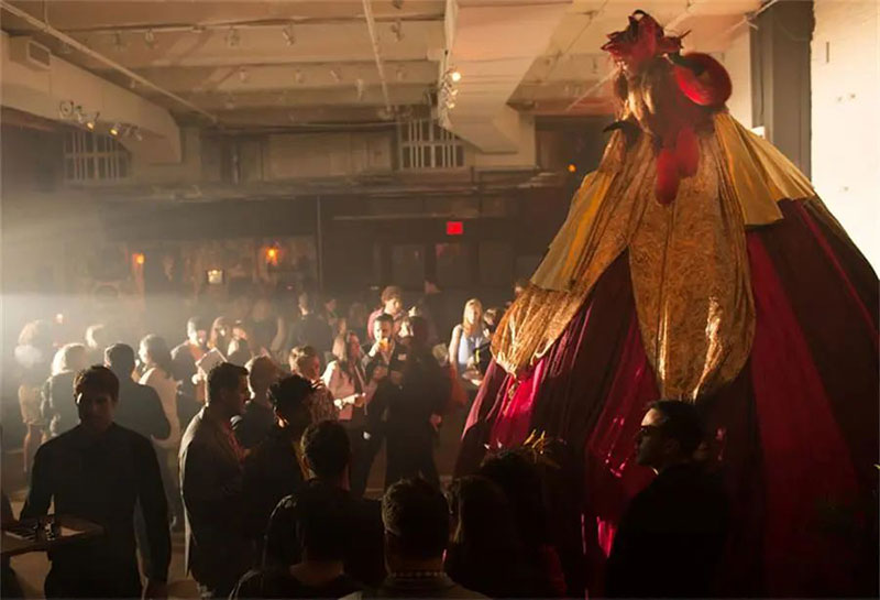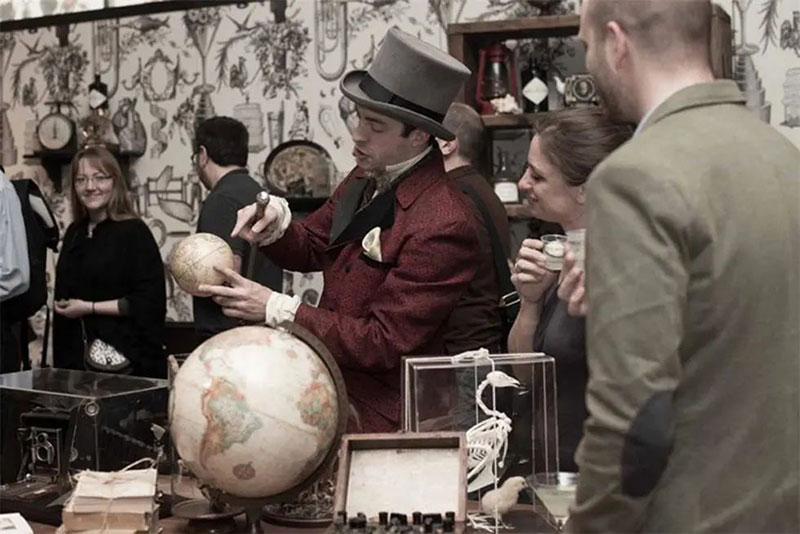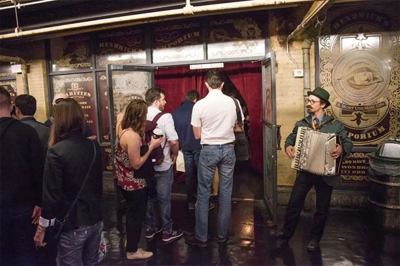 “非凡的商场”是在一家“奇奇怪怪的商店”里举办的地下酒吧派对,客人们通过一堵秘密的墙进入会场,并享受到各种不同寻常的创意,从在会场周围游荡的“小鸟”,到穿着巨型女士裙子的茶会,再到锁在一个提供鸡尾酒的盒子里的怪物。